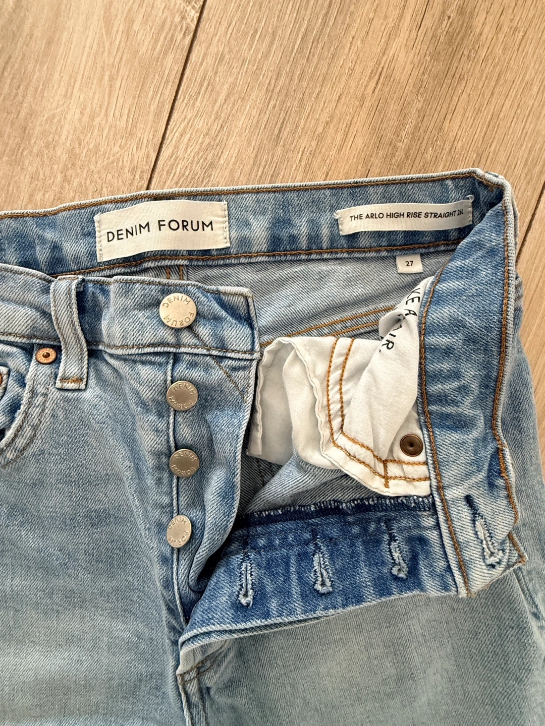 Denim Forum The Arlo High Rise Straight jeans. Straight leg fit with a button fly. Size 27.
