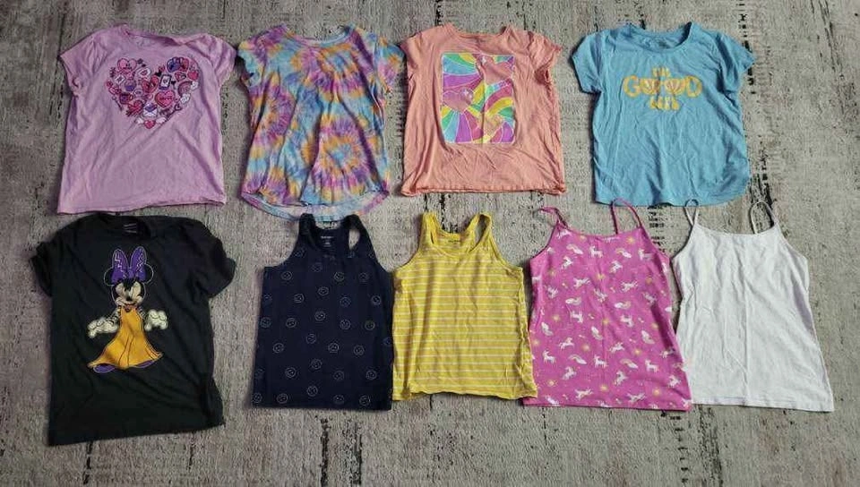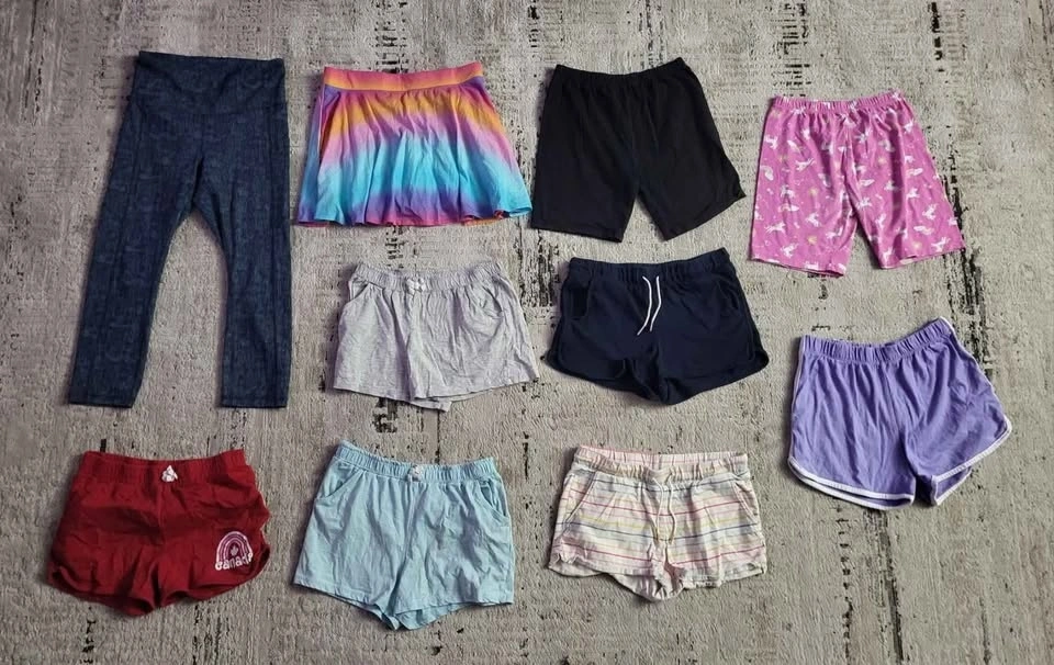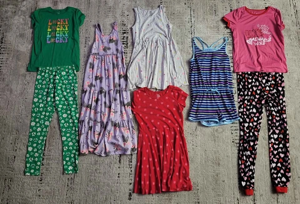 Girls size 14-16 Spring/Summer clothes lot. Mostly George, Old Navy and Children's Place brands. Includes: 3 dresses, 1 romper, 1 legging, 6 T-shirts, 4 sleeveless tops, 1 top/pants pajama set, 1 capri pant, 1 skort, and 8 shorts. Cash only.