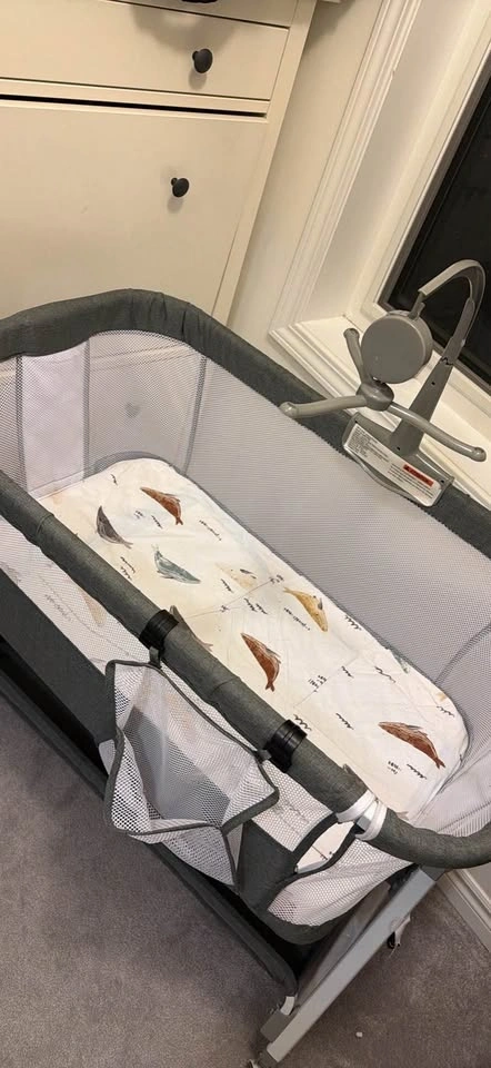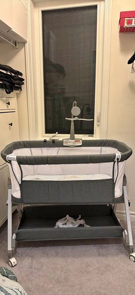Bed side bassinet, one side unzips for bed. All original attachments included. Only used for 2 months as baby outgrew it. No stains, no scratches. Pet and smoke friendly house.