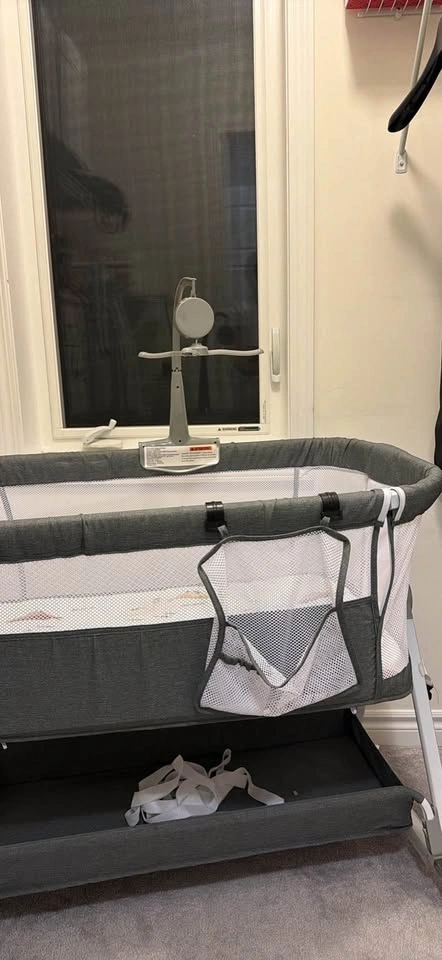 Bed side bassinet, one side unzips for bed. All original attachments included. Only used for 2 months as baby outgrew it. No stains, no scratches. Pet and smoke friendly house.