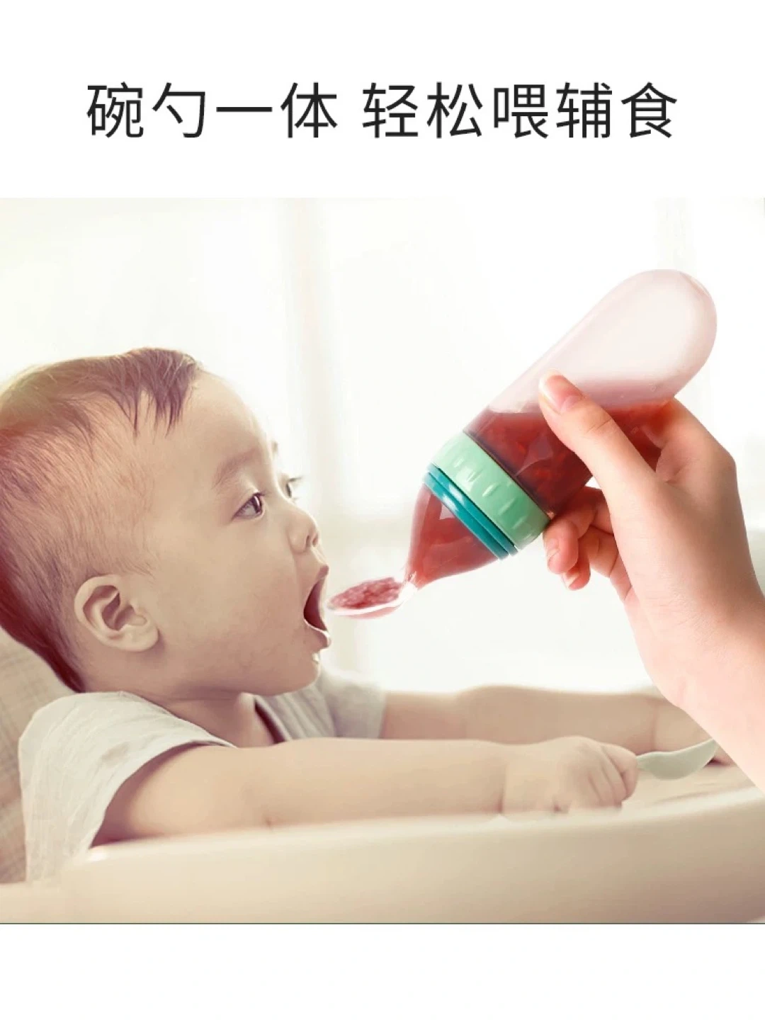 This baby food dispensing spoon is great for feeding on the go. It's made of BPA-free silicone and comes with a cap to prevent leaks. Easy to use and clean, it's perfect for introducing solids to your little one! My baby didn't like it after just one use.