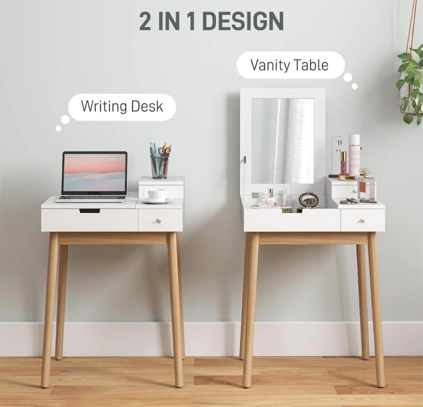 2-in-1 Make up- Vanity Table and Desk with Mirror