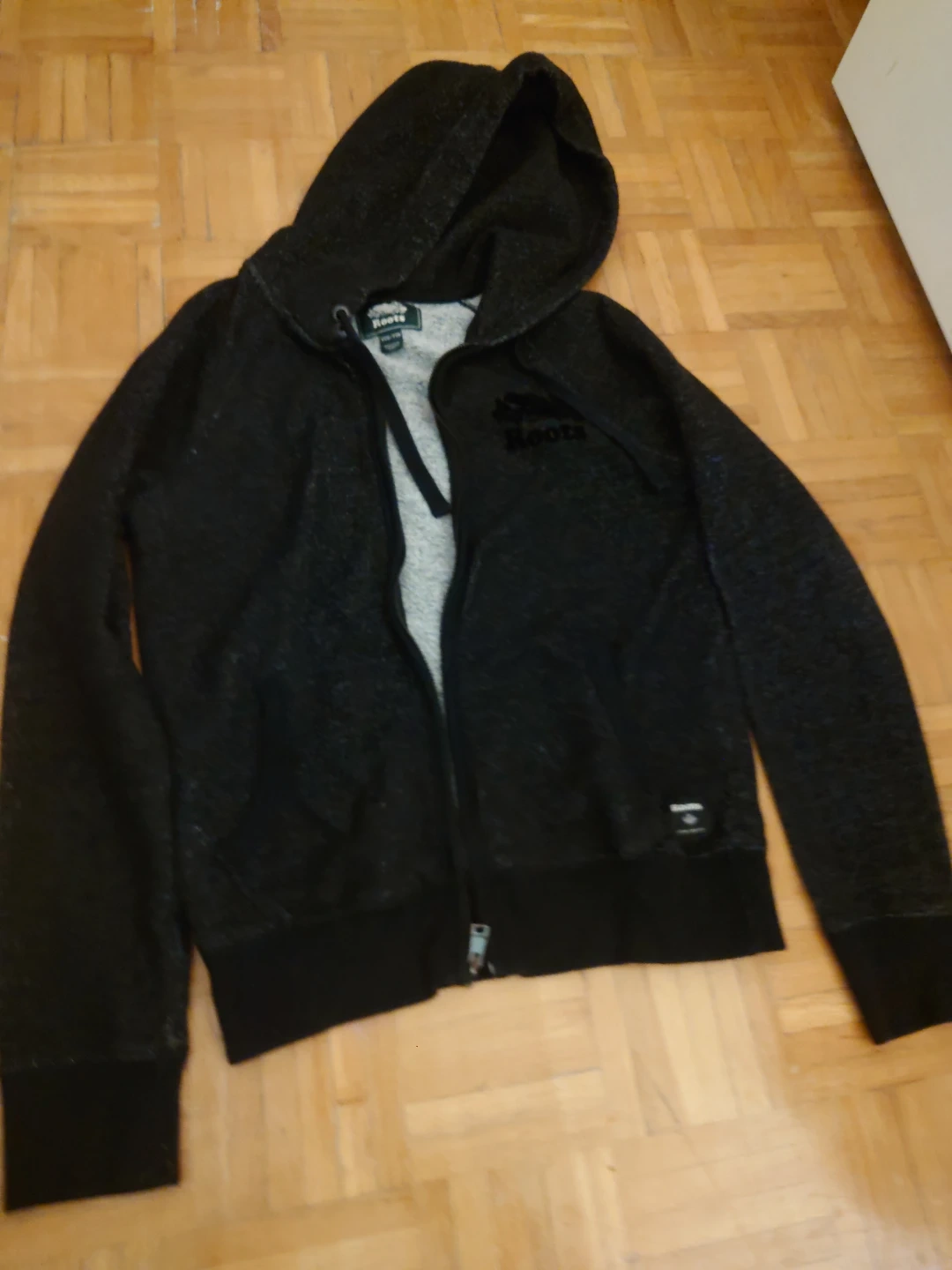 Selling a Roots zip up hoodie in size XXS. It's black with the Roots logo on the front. Great for layering or wearing on its own! Y2K