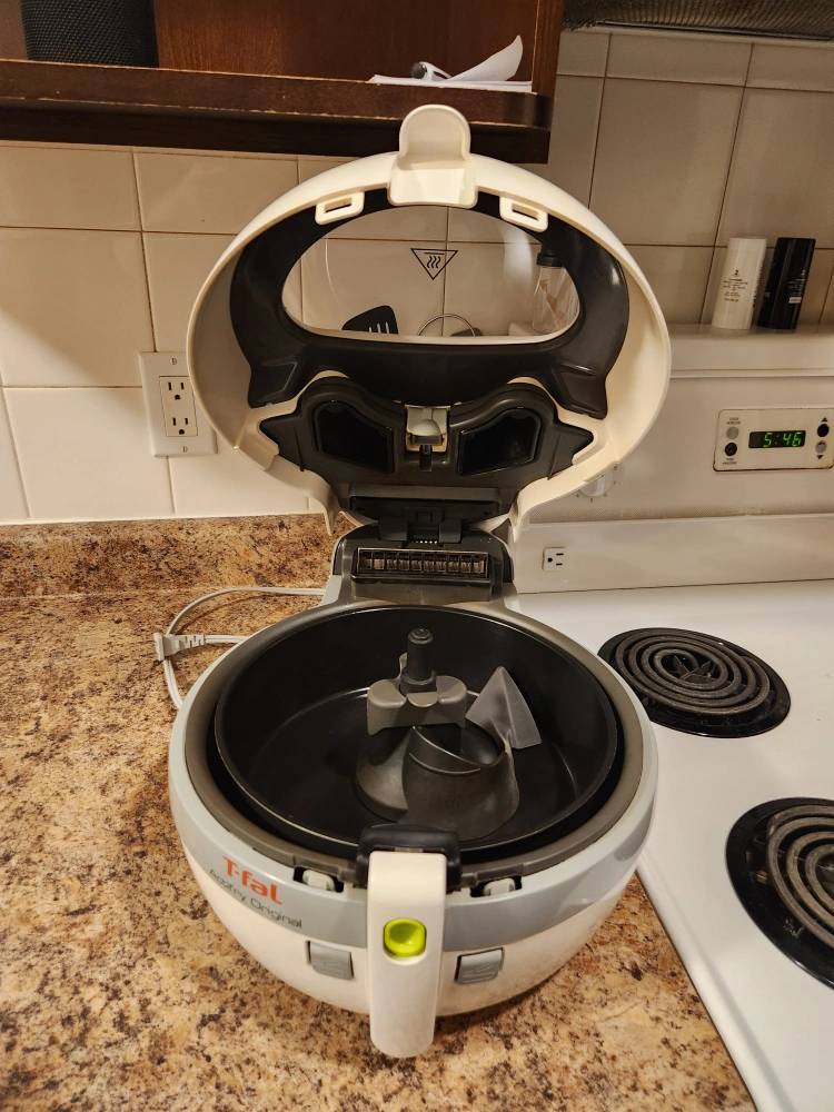 167Selling a T-fal ActiFry Original air fryer! It's in great shape and perfect for making delicious and healthy meals. This air fryer stirs itself so it is great for fries, pizza rolls and chicken nuggets. Hard to find one that stirs these days. Check out the settings on the top to cook your favourite foods! There is no temperature or timer, just press the button and it starts. Price Firm. Pick-up Only. Cash Only