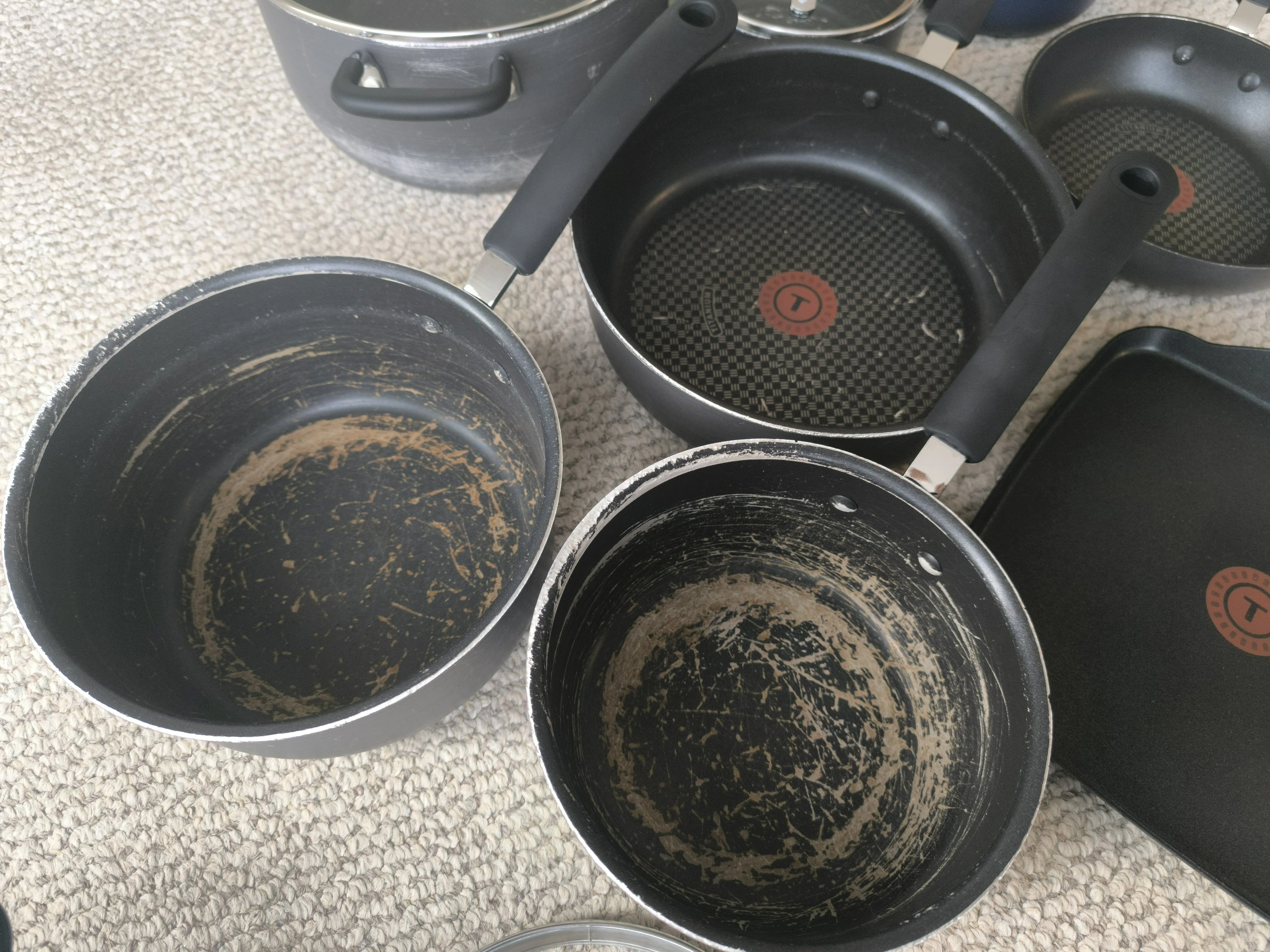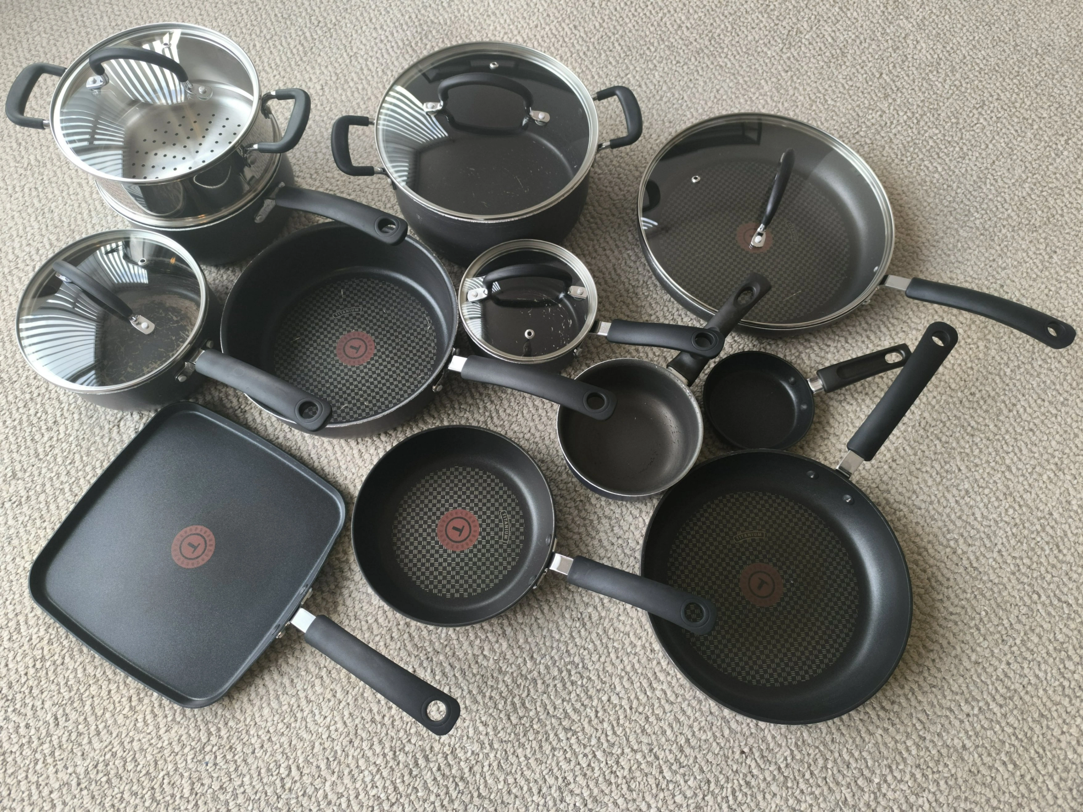 177T-FAL Titanium Nonstick cookware set in fair condition. Oven and dishwasher safe. Store page: https://www.amazon.ca/dp/B00TQJWF1I?ref_=ppx_hzod_title_dt_b_fed_asin_title_0_1&th=1