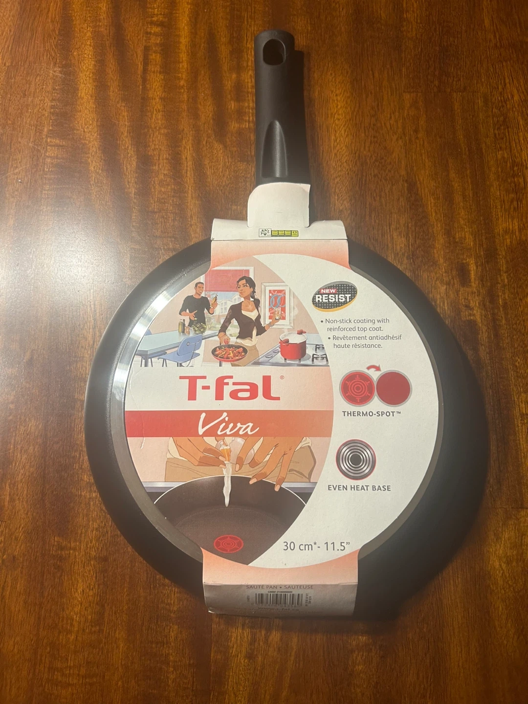 60Selling a brand new T-fal Viva fry pan! This pan features a non-stick exterior and interior for easy cooking and cleaning. - Thermo-Spot technology indicates when the pan is perfectly preheated - Even heat base ensures consistent cooking results - Size: 30 cm / 11.5 inches 💵 Bundle with any of my other listings for a discount. 🤝 Pickup at a public location in Fort Erie. 📦 Bundled orders over $75 — can arrange public location delivery within the Niagara region. 💰Cash or E-transfer accepted.