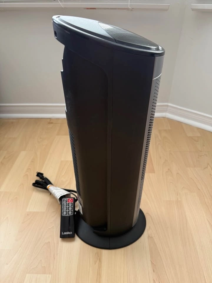 Provides powerful, consistent heat in a slim, space-saving tower design. Features adjustable thermostat and multiple heat settings for customized comfort. Built-in oscillation evenly distributes warm air throughout the room.