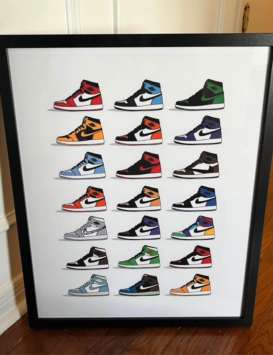 Framed matte high quality poster featuring 21 popular Air Jordan 1 designs!