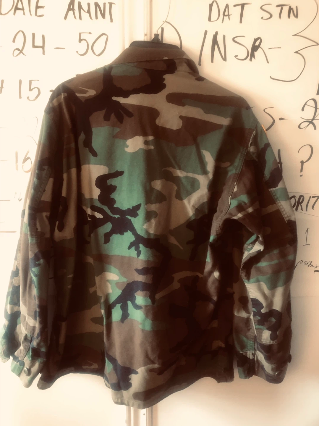 Selling a U.S. Army camouflage jacket. It features a classic camouflage pattern and the 'U.S. ARMY' label. Perfect for anyone looking for a durable and stylish jacket!