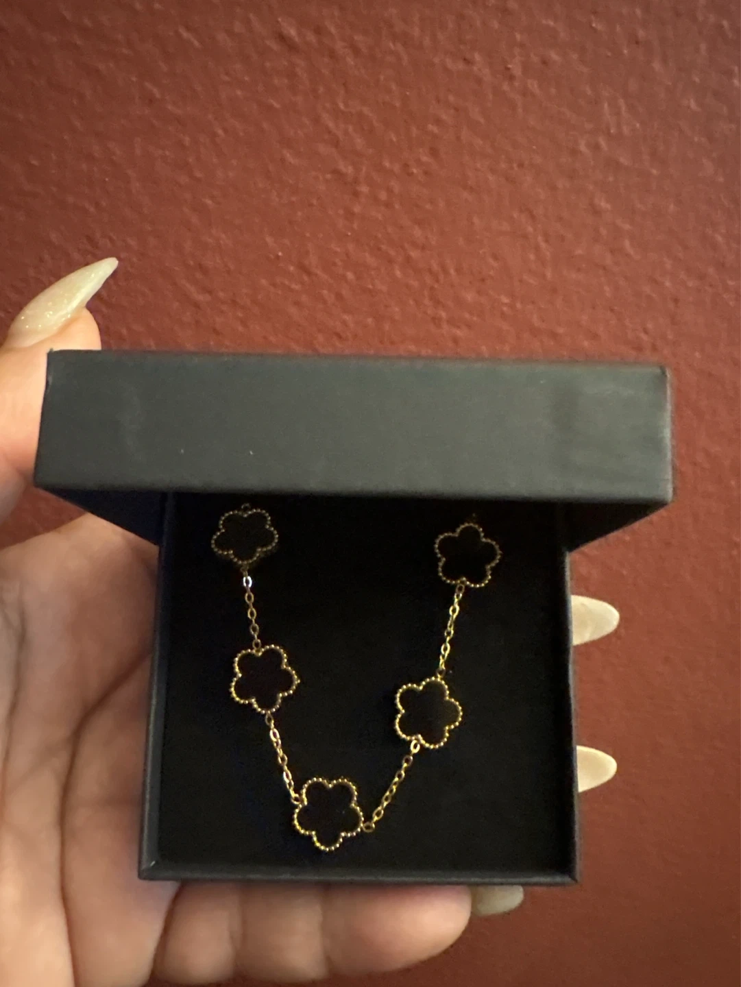 NEW 18K Gold SS Black Onyx Flower Necklace