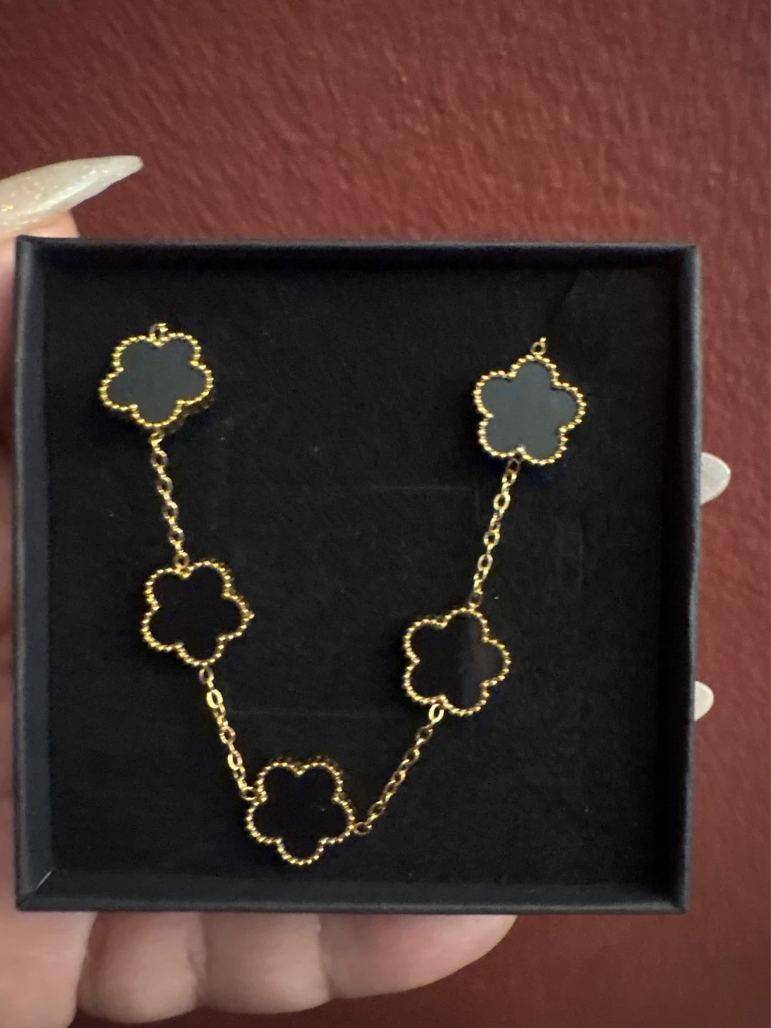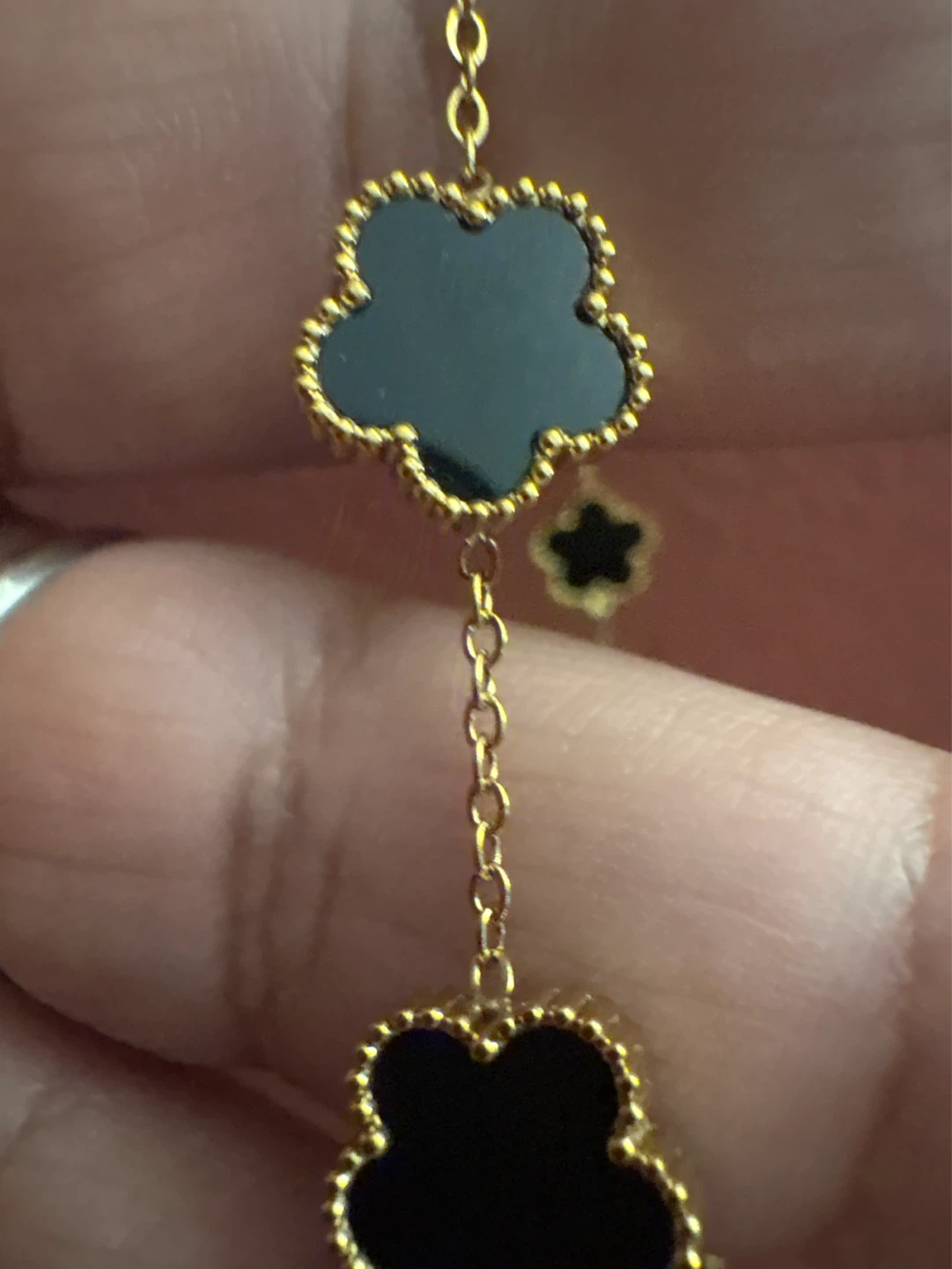 NEW 18K Gold SS Black Onyx Flower Necklace