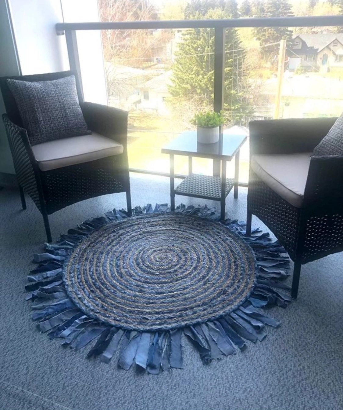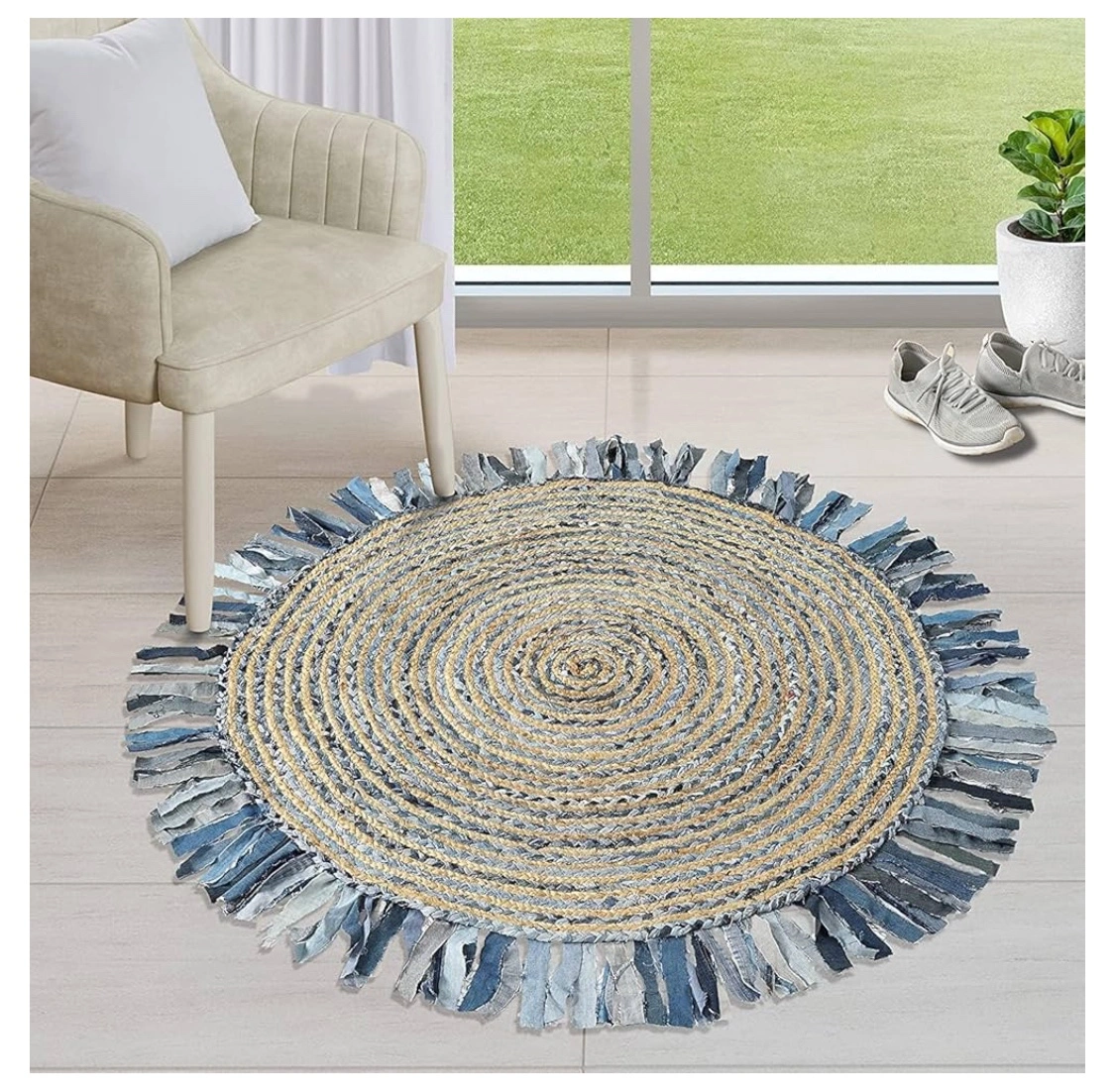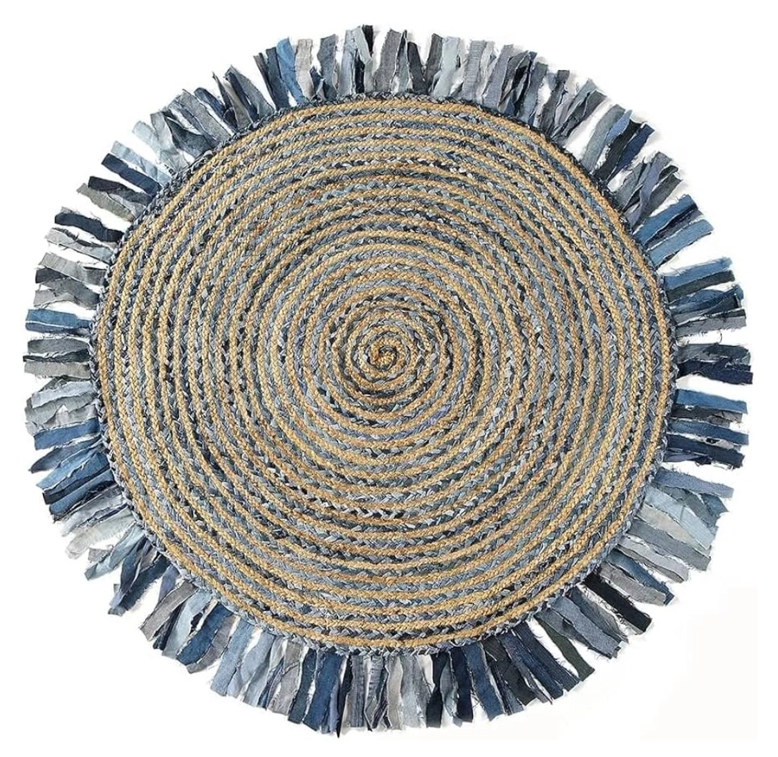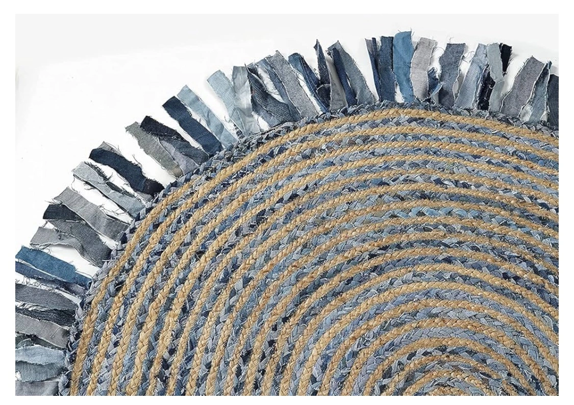 NEW 5' Round Jute Rug with Denim Fringe