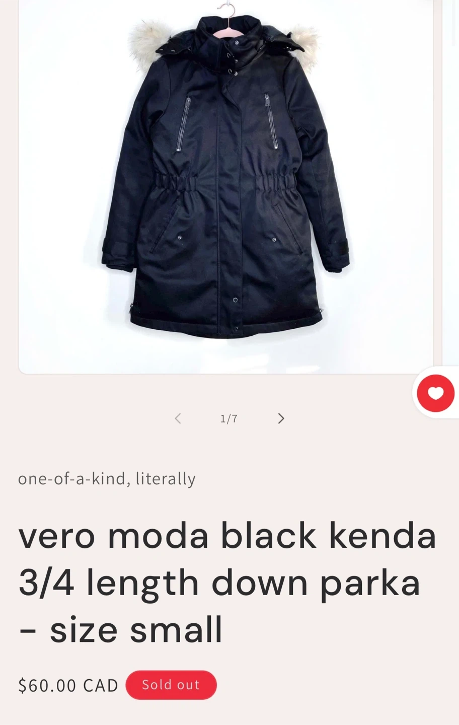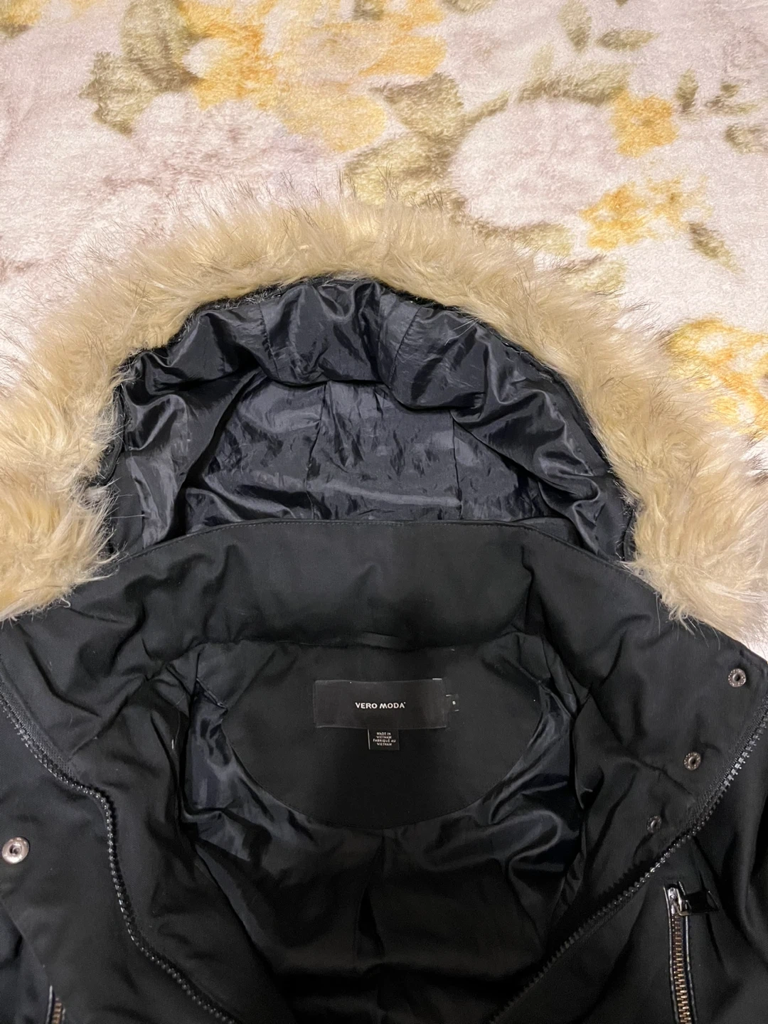 Ladies Vero Moda Kendra 3/4 Down parka with faux fur trimmed hood.