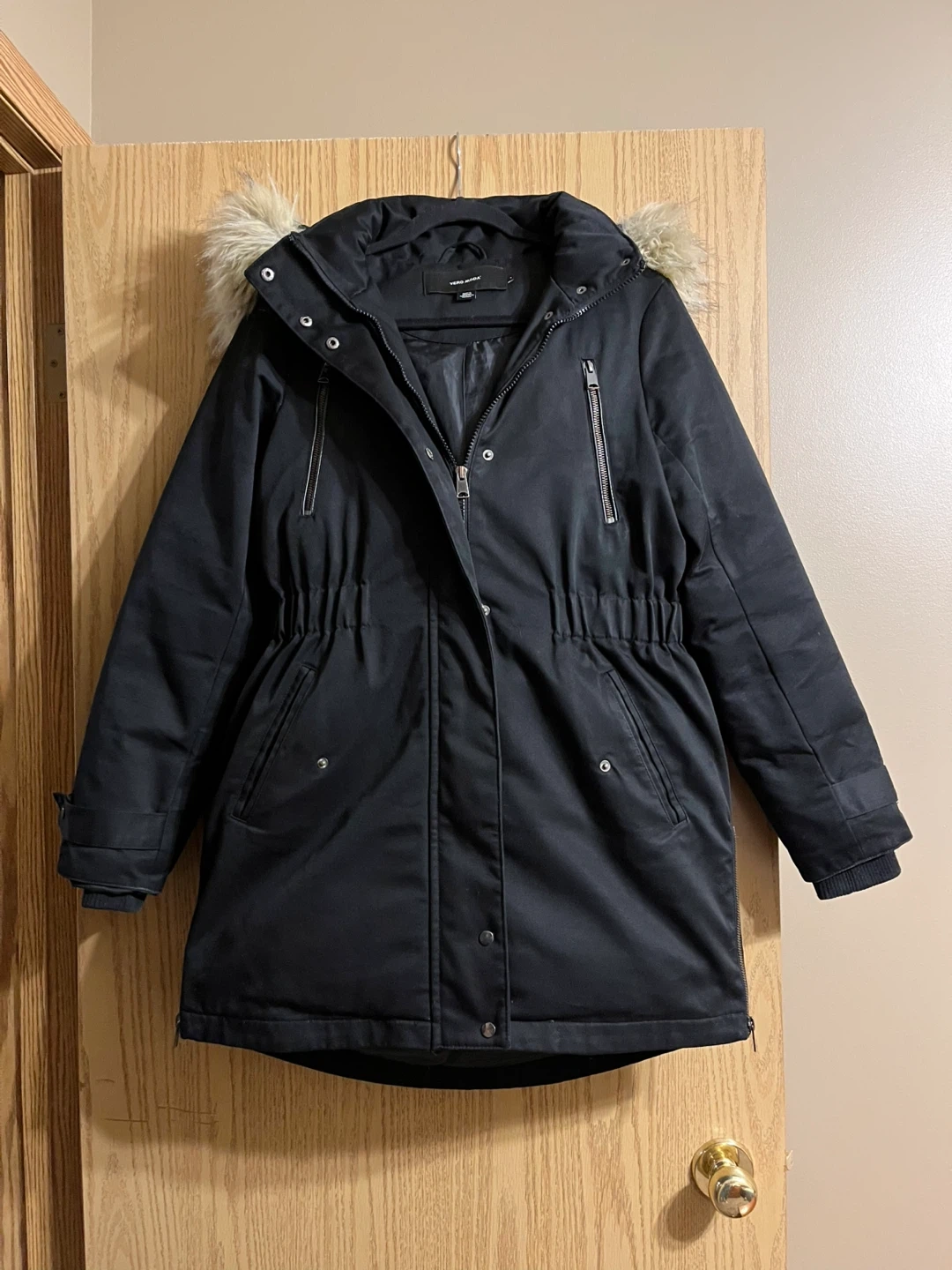 Ladies Vero Moda Kendra 3/4 Down parka with faux fur trimmed hood.