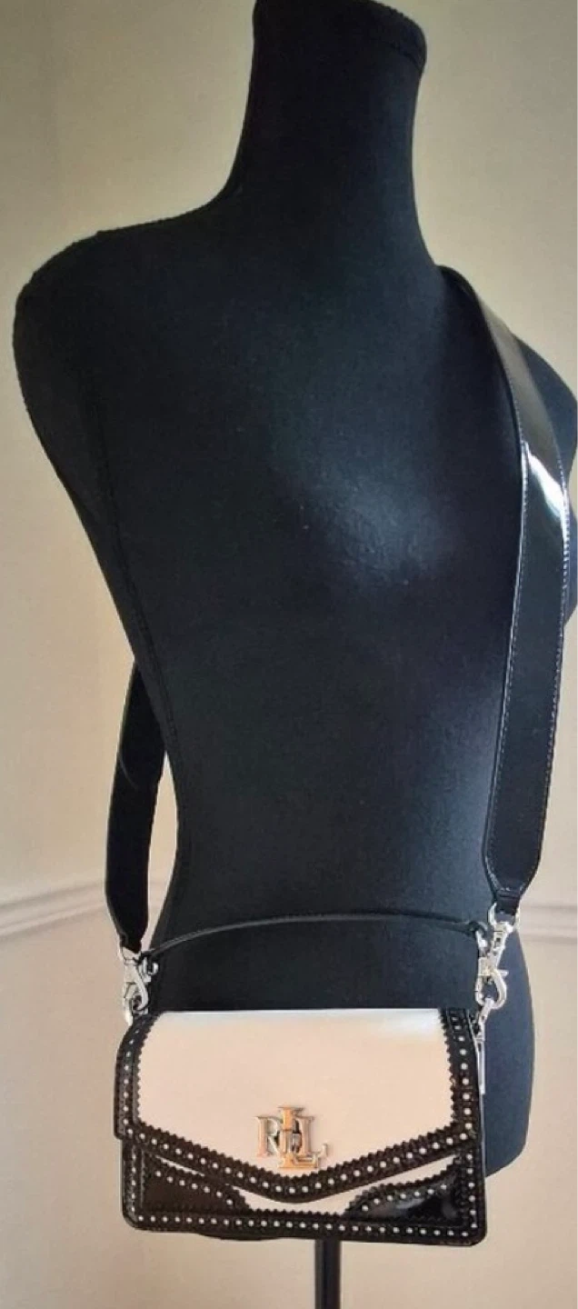 Ralph Lauren Lauren Ralph Lauren Black Patent & White Perforated Leather Convertible Crossbody / Shoulder Bag