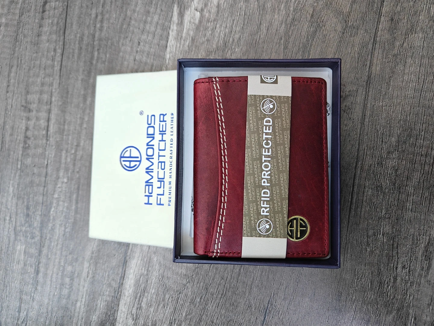 Genuine leather bifold wallet by Hammonds Flycatcher. It's RFID protected to keep your cards safe. Includes original box