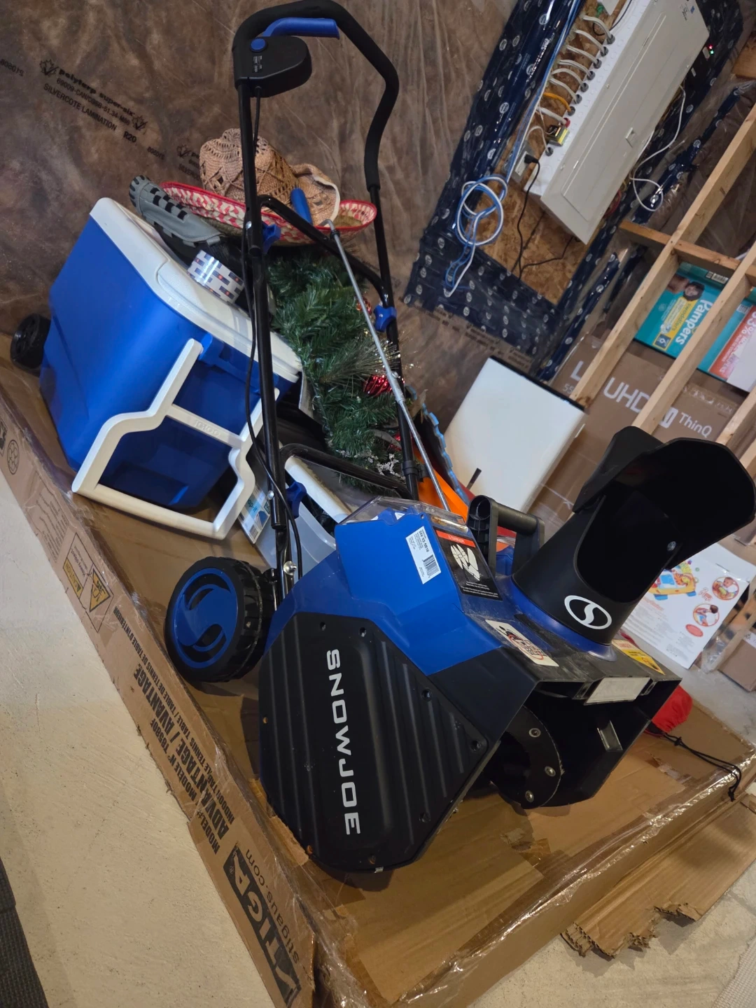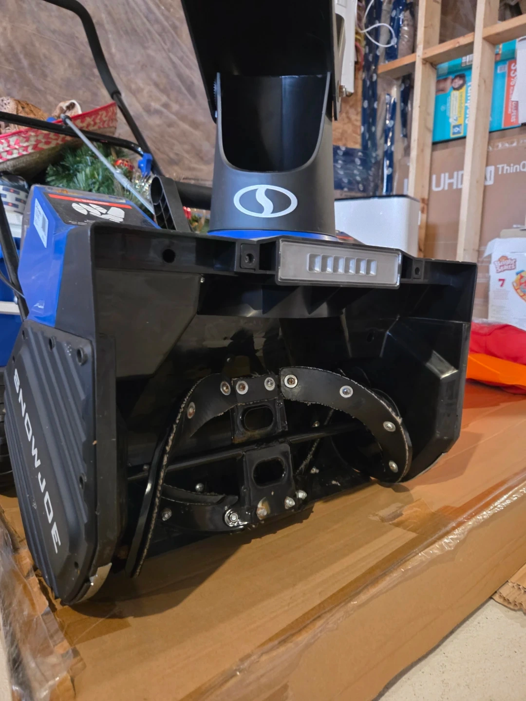This Snow Joe electric snow thrower is ready to tackle winter weather. It's designed to clear snow efficiently. A great tool for keeping your walkways and driveways clear during snowstorms!