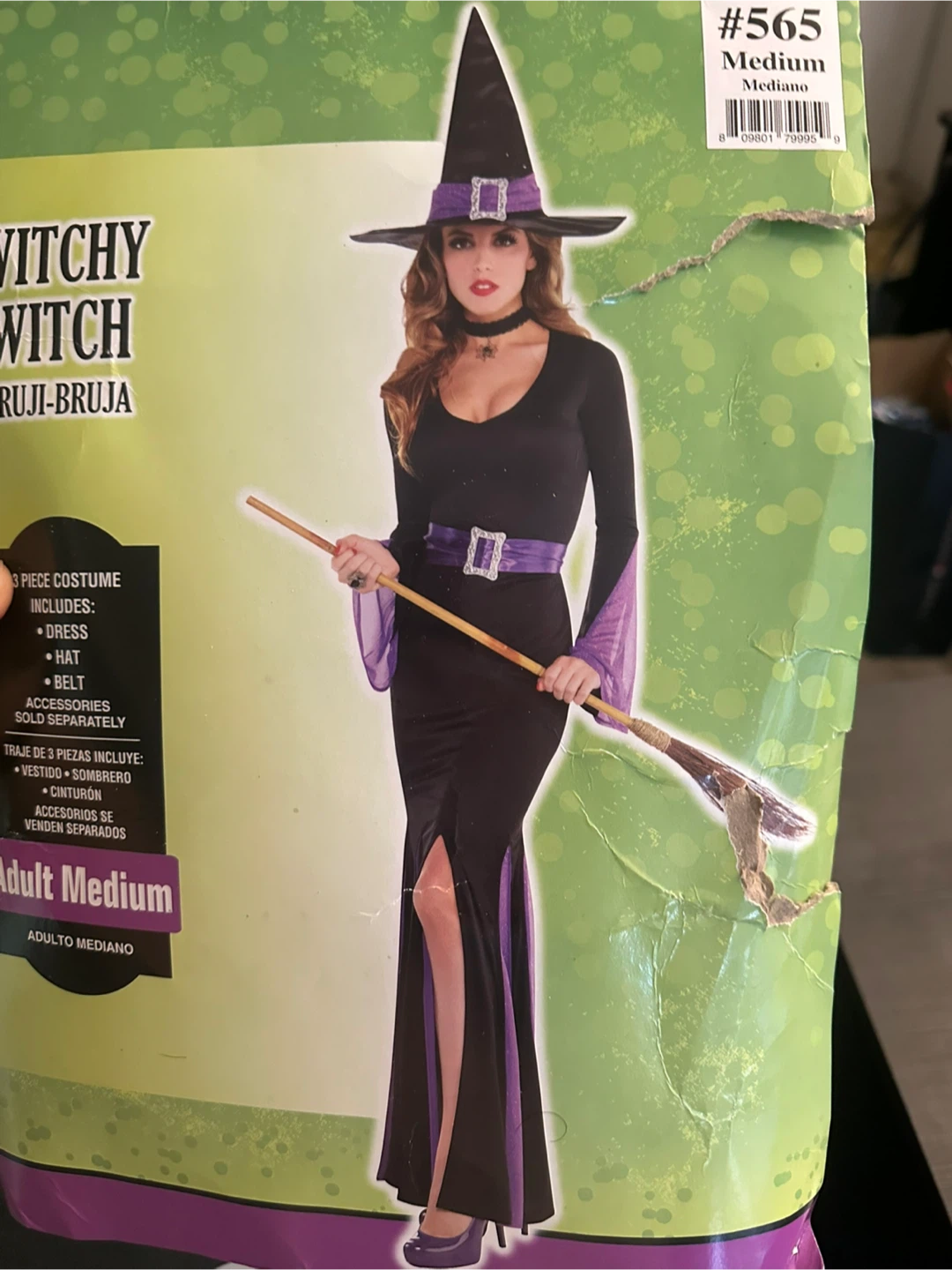Selling a Witchy Witch costume in adult medium size. This 3-piece costume includes a dress, hat, and belt. Accessories are sold together.