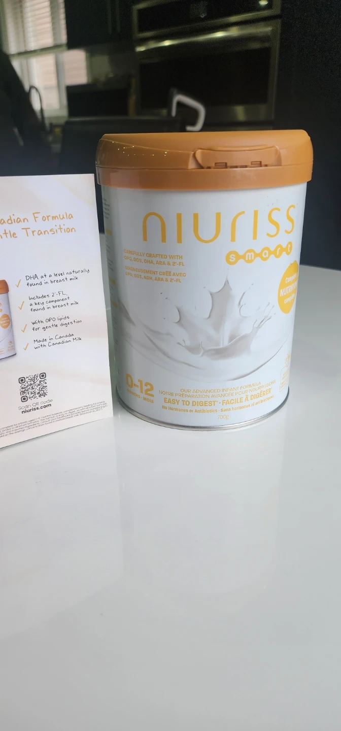 Sealed packed , original price is 50$ Niuriss Smart formula for infants aged 0-12 months. It's formulated with DHA, ARA, and 2'-FL for gentle digestion. This formula is made with Canadian milk.