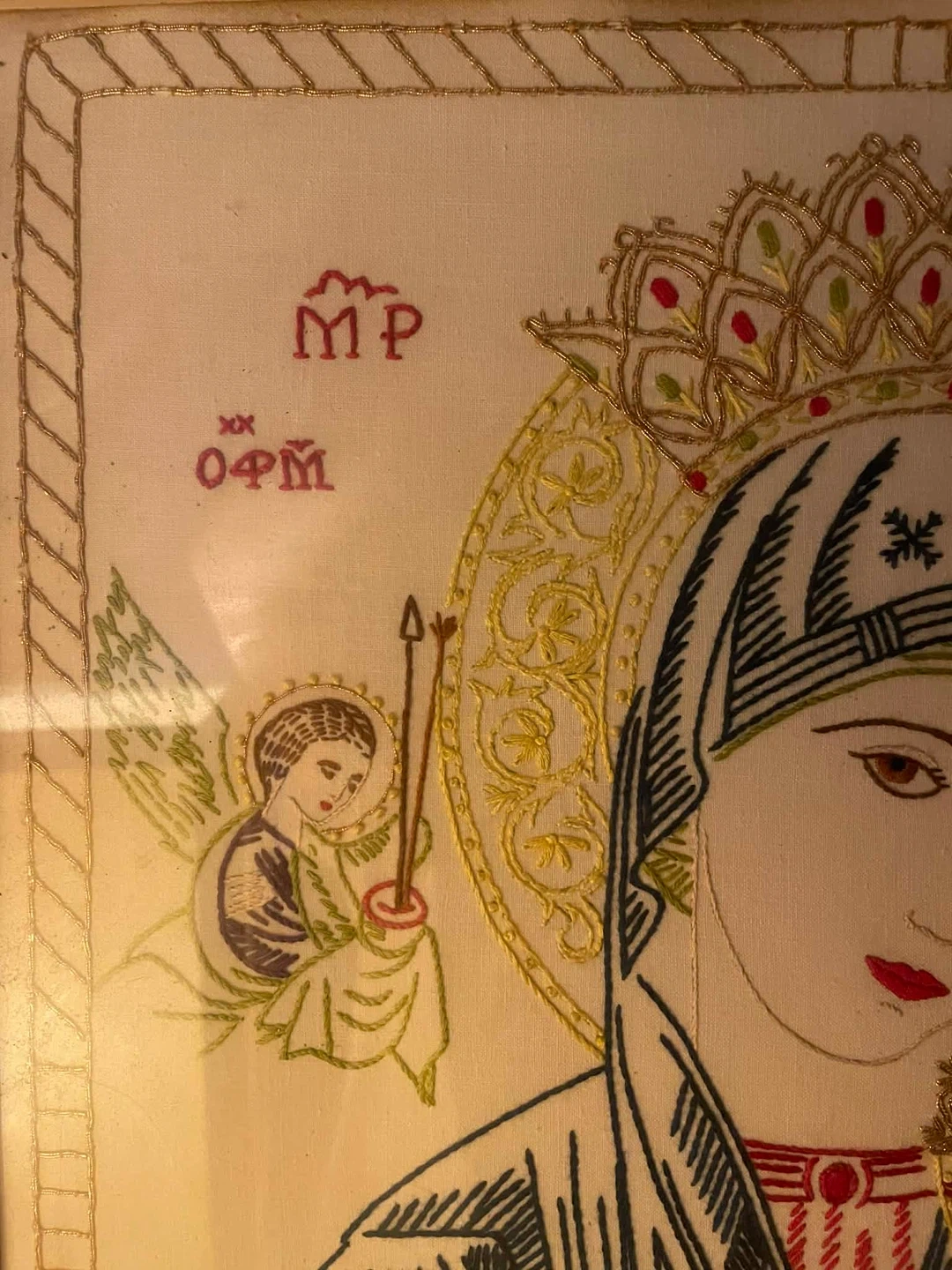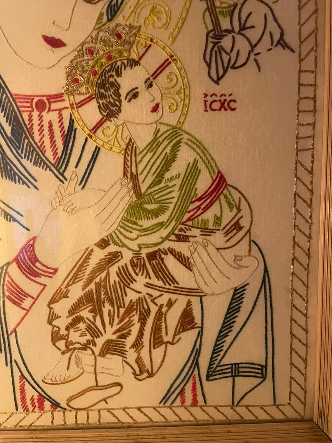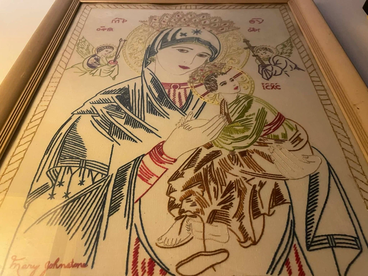 Vintage 1963 Hand-Embroidered Icon "Our Lady of Perpetual Help"