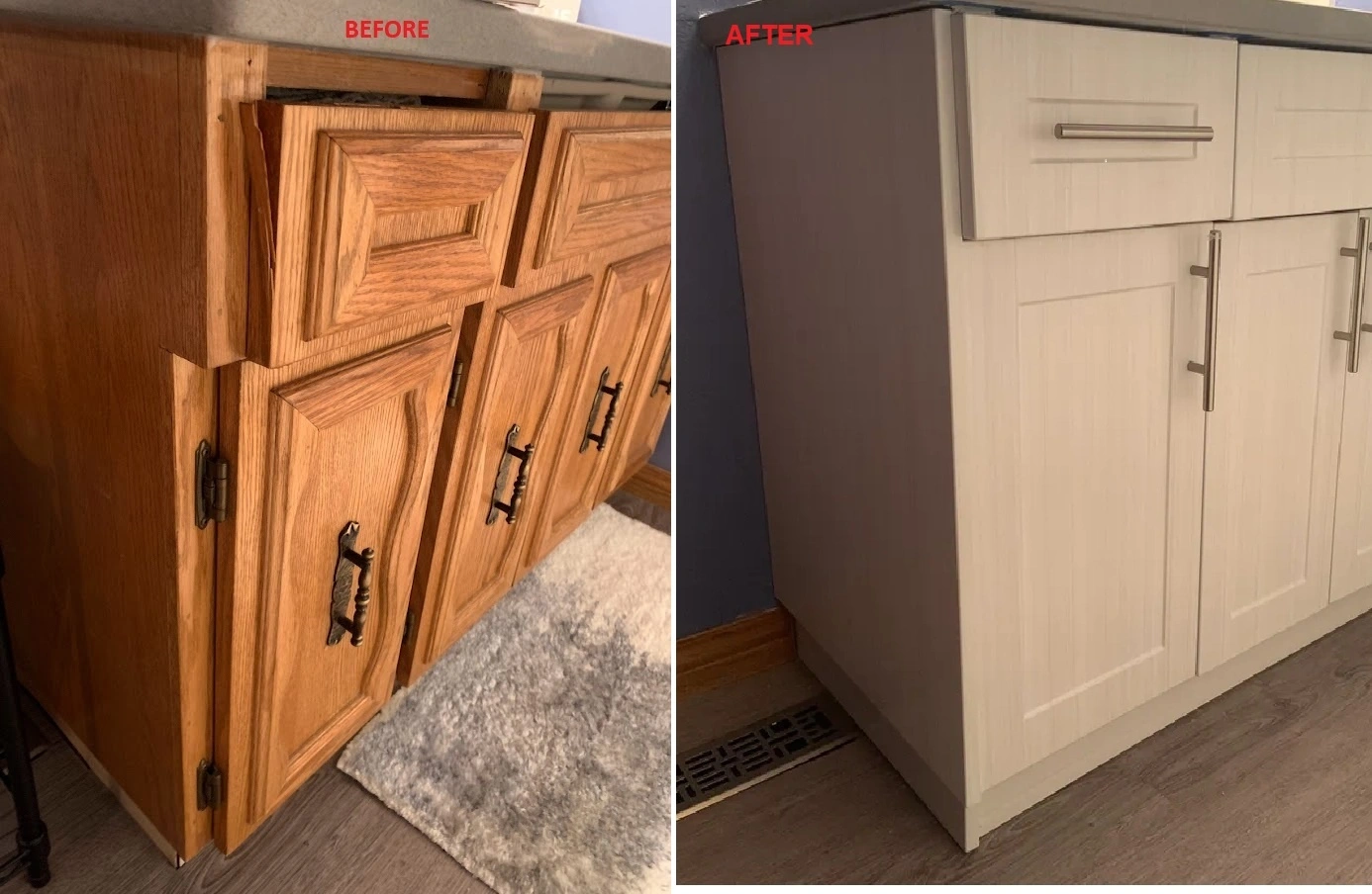 In just a couple hours, you can transform outdated, worn cabinets into a stunning, cohesive design.