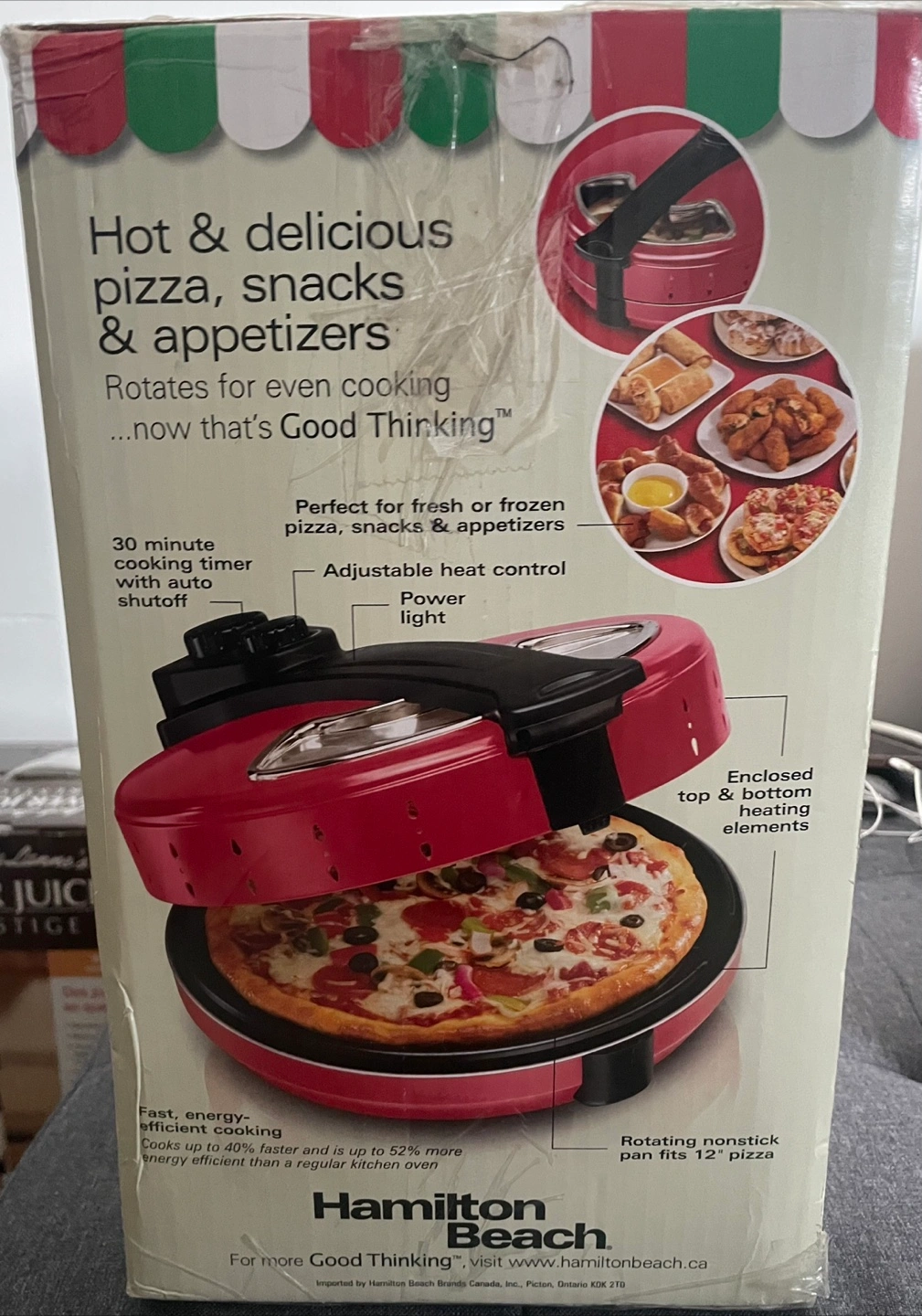 Get ready to enjoy hot and delicious pizzas, snacks, and appetizers with this Hamilton Beach Pizza Maker! It's designed to rotate for even cooking, making it perfect for both fresh and frozen pizzas.