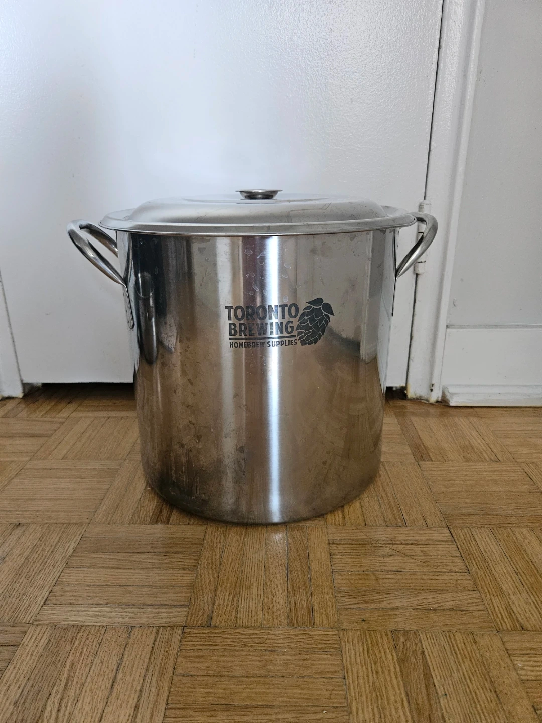 Large stainless steel pot from Toronto Brewing Homebrew Supplies. It's a durable option for homebrewing. Stainless steel construction.