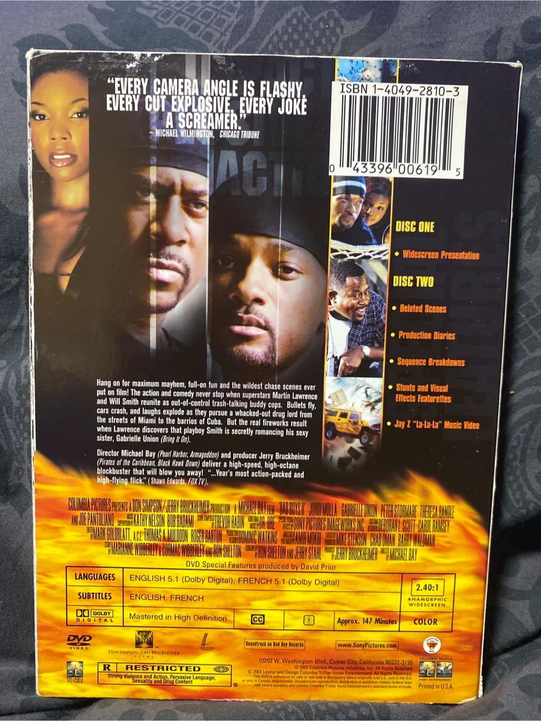 Selling a DVD of Bad Boys II. Enjoy the action and comedy of Martin Lawrence and Will Smith! This DVD includes widescreen presentation, deleted scenes, production diaries, sequence breakdowns, stunts and visual effects features, and Jay Z's "La La La" music video