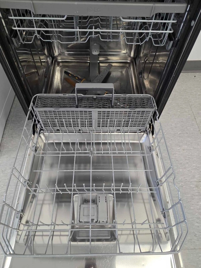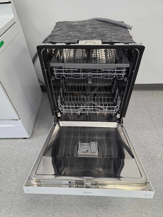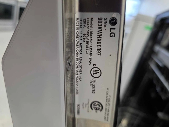 Upgrade your kitchen with this sleek and quiet LG dishwasher. Features a hidden top-control panel for a seamless look and powerful cleaning technology! Brand: LG Model: LDF5545WW / DUA513FW Features: Inverter Direct Drive Motor (Quiet), QuadWash™ System (4 spray arms), EasyRack™ Plus, Energy Star® Rated. Finish: Classic White LG dishwashers are ranked #1 in reliability. 3 months warranty for peace of mind. Credit, Debit, and Cash accepted. Come see this unit and explore our full inventory at our showroom! 59 Montreal Road, Vanier (ON)