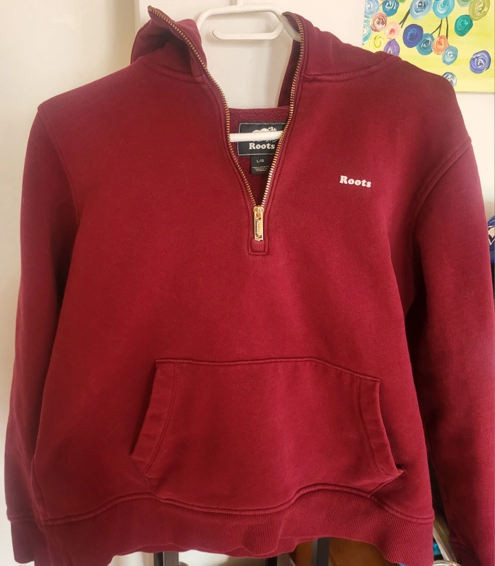 Selling a Roots burgundy 1/2 zip hoodie in size L/G. It's in great condition and ready for a new home! Perfect for cozy days or layering up. Fits more like a medium.