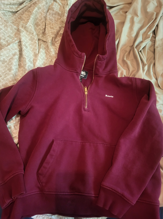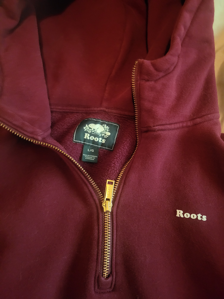 Selling a Roots burgundy 1/2 zip hoodie in size L/G. It's in great condition and ready for a new home! Perfect for cozy days or layering up. Fits more like a medium.