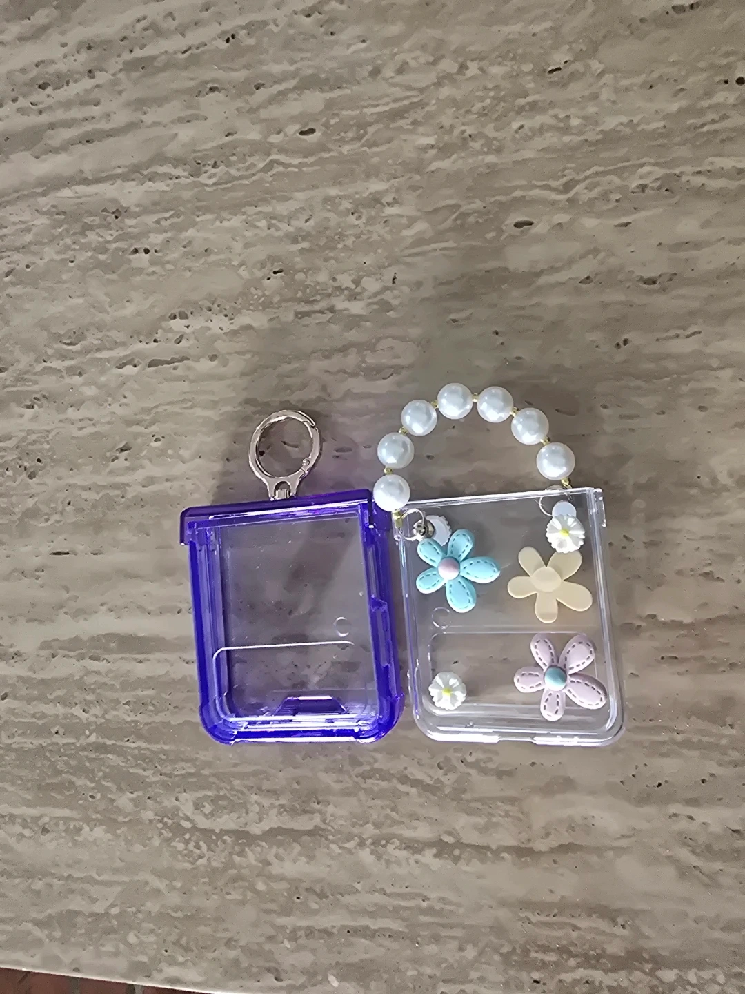 Clear Card Holder with Pearl Charm and Flower Embellishments