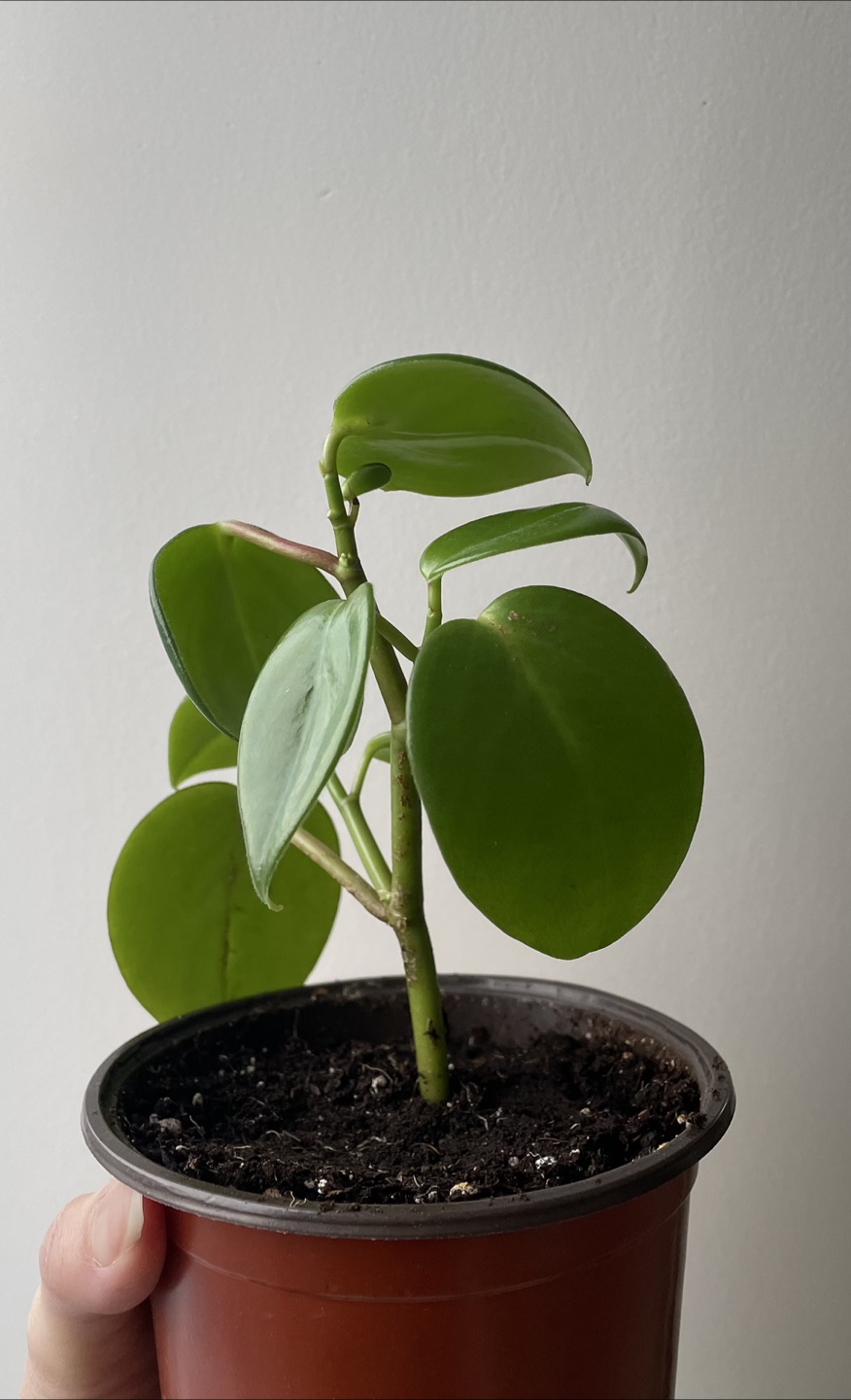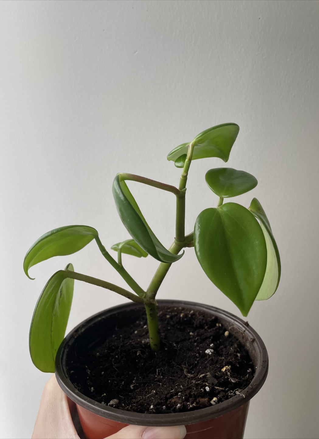 Selling a healthy, well-rooted pepperomia scandens cutting. It was initially rooted in water and now planted in soil
