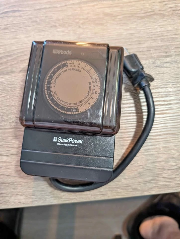 Stay ready for winter with this Woods Block Heater Timer. Designed to save you up to $25 a year on energy costs by automating your car's heater. Heavy-duty & Weatherproof: Built to withstand tough outdoor conditions. Easy to Use: Just plug it in; features never-lose pins. Safety: Grounded 3-prong plug with a protective cover. Savings: Pre-programmed for 4-hour cycles to optimize heating and reduce power bills. Electrical Rating: 125V AC / 15A / 1875W.