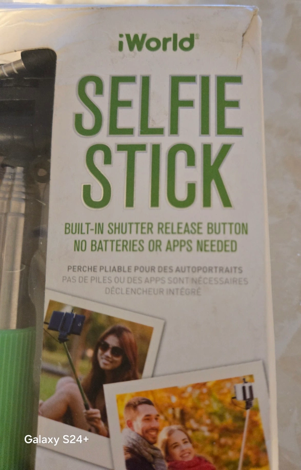 Selling an iWorld selfie stick that extends up to 36 inches! It has a built-in shutter release button, so no batteries or apps are needed. It also features a collapsible design and is compatible with most smartphones. The box is included!
