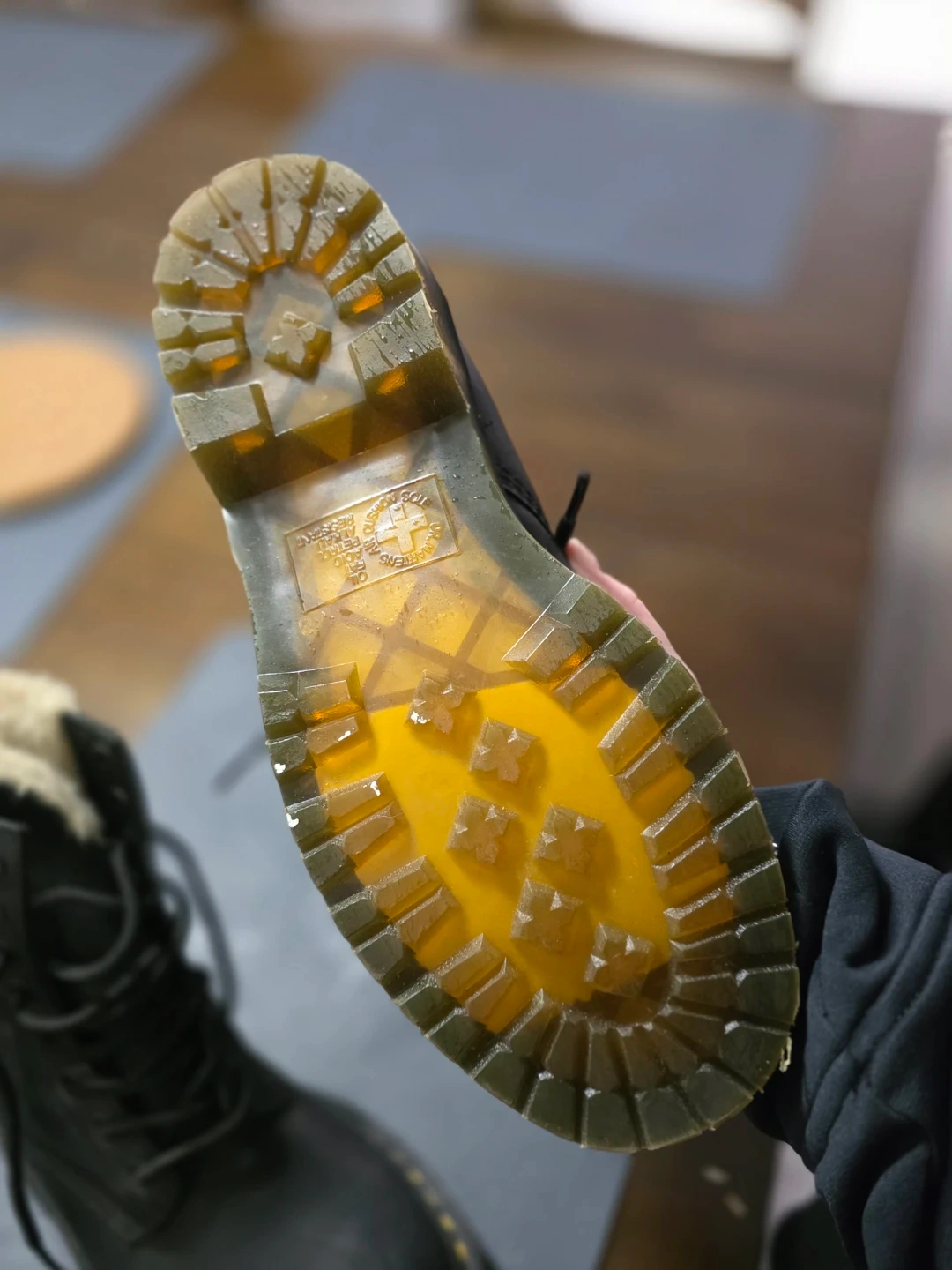 Dr. Martens 1460 Serena boots with faux fur lining. Women's size 8 UK / 39 EU. Durable black leather construction. Perfect for keeping your feet warm during colder months!