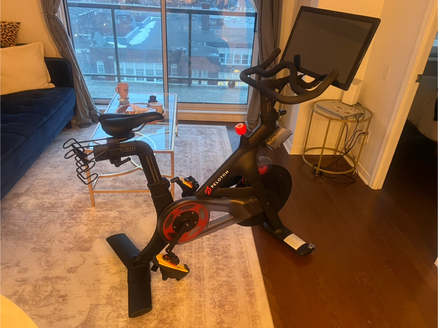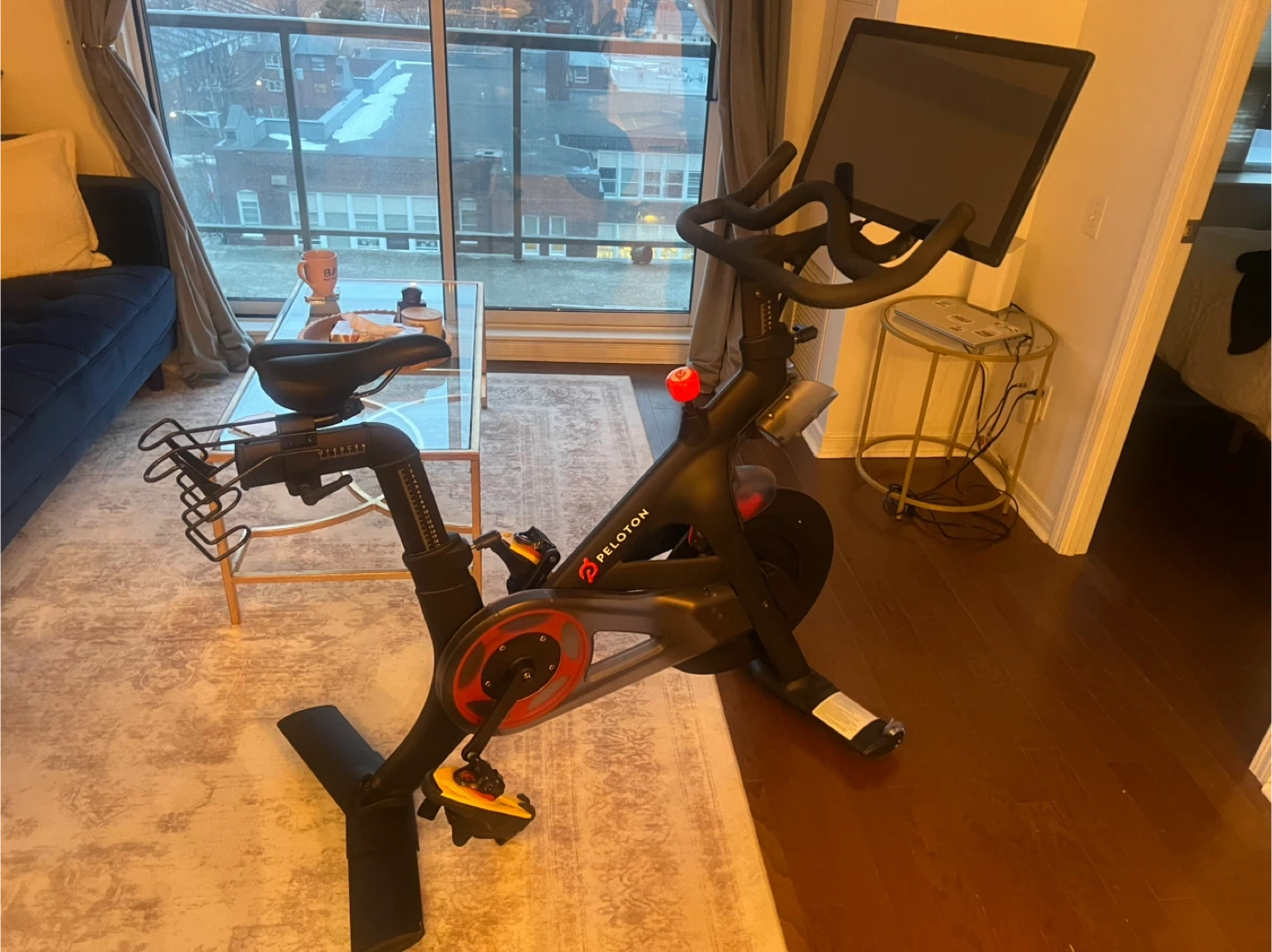 Selling a **Peloton Bike in excellent condition. Everything works perfectly and it has been well cared for in a clean, smoke-free condo. In addition, two pairs of bike shoes.