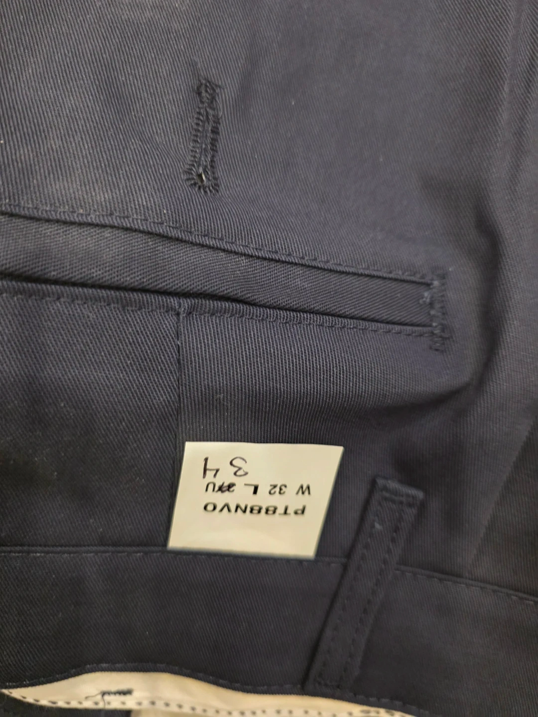 Includes several orange Hi-Vis short-sleeve safety shirts in size L and several navy work pants in size 32W x 34L. Shirts are made of polyester. Pants are made of a durable fabric.