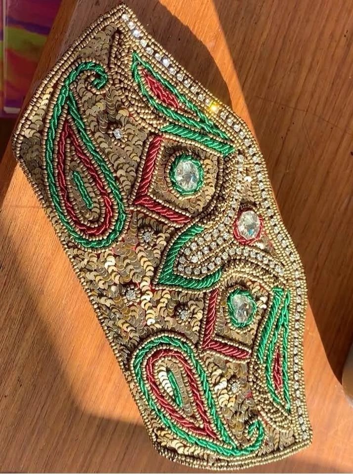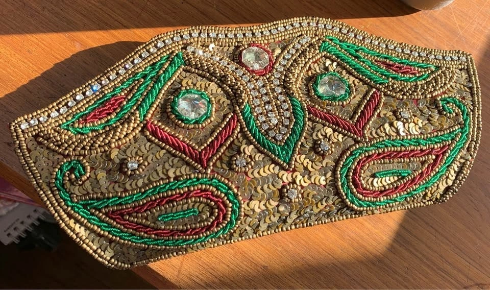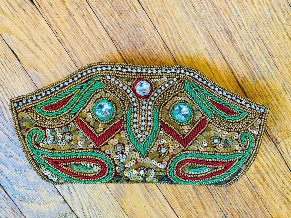 Antique Moroccan bejewelled embroidered Clutch 10x5