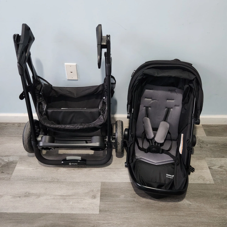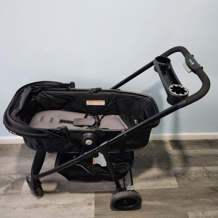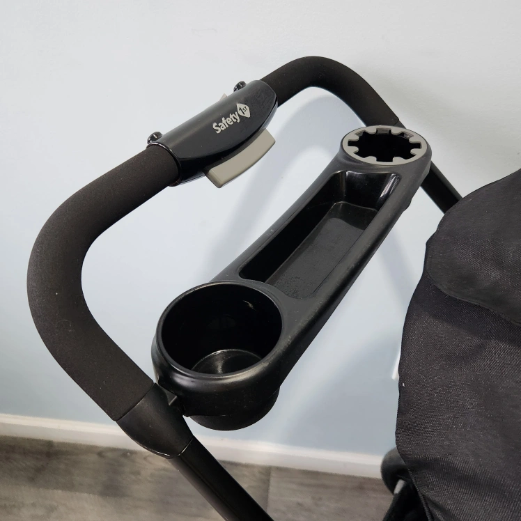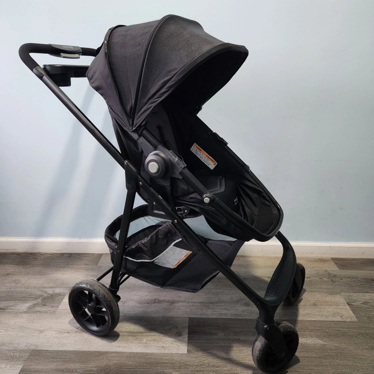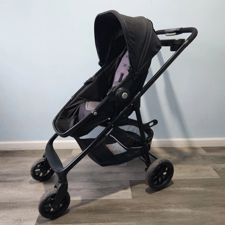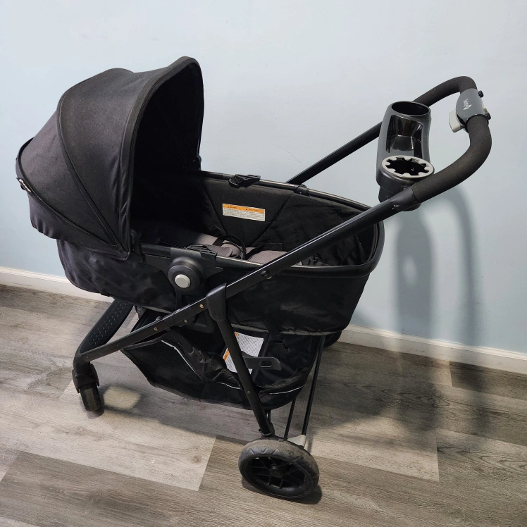 Black stroller, includes bassinet and cup holders. Lightweight and easy to maneuver. Great for everyday use.