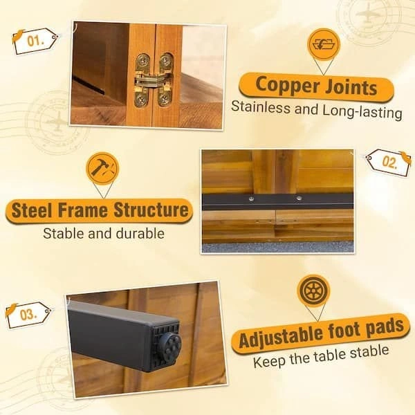 It's made of solid acacia wood and is suitable for both indoor and outdoor dining.