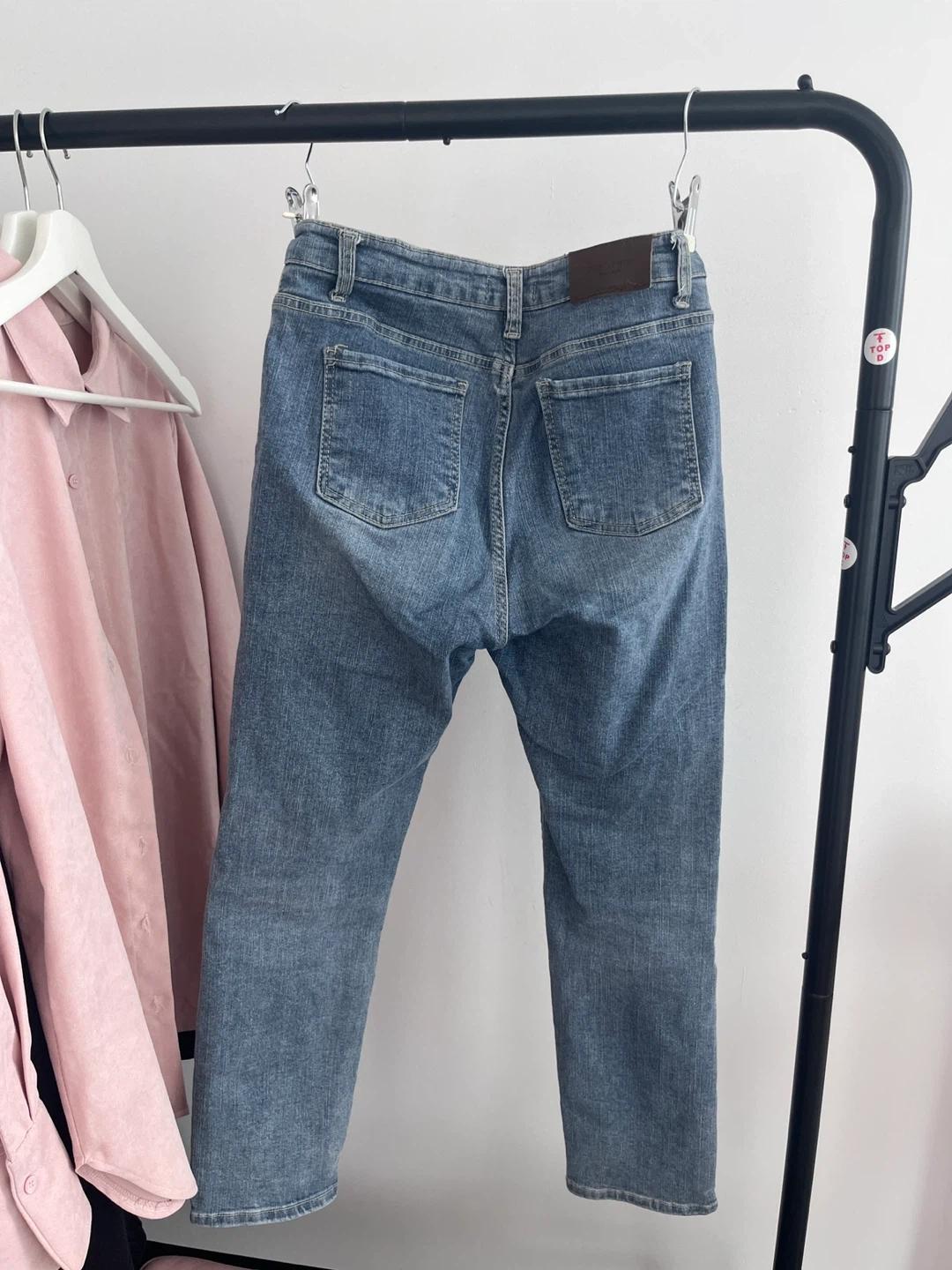 These are blue denim jeans from SLOWAND. South Korea brand. The material is denim. Purchased in South Korea. (Click other listings- Moving country sale - every clothes and handbags under $10)