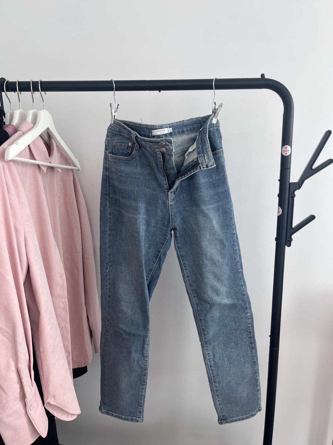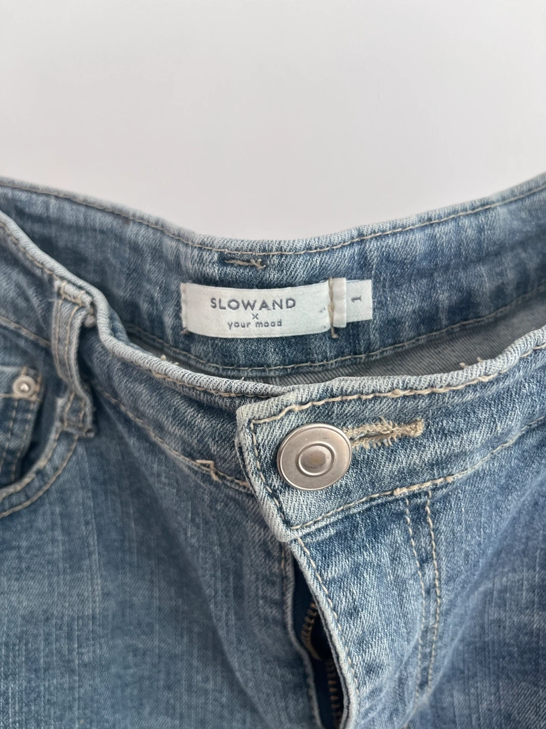 These are blue denim jeans from SLOWAND. South Korea brand. The material is denim. Purchased in South Korea. (Click other listings- Moving country sale - every clothes and handbags under $10)
