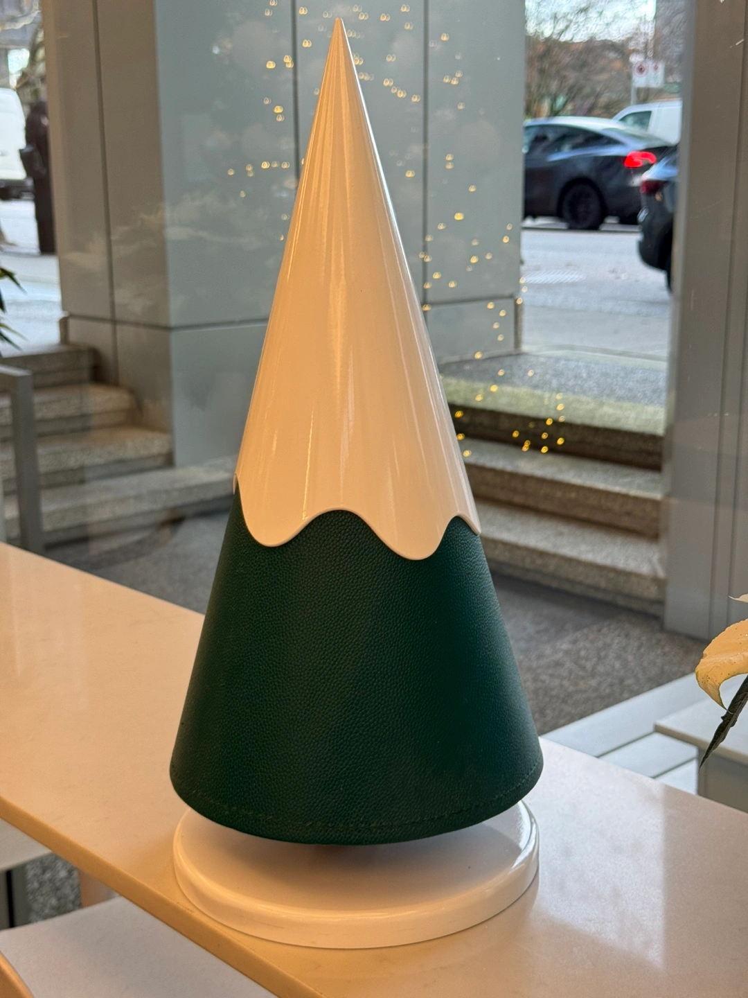 This unique claymation style coach Christmas tree was used in stores as display a couple years ago. The lush green coach leather base, mixed with a white high gloss for snow and its shape, make for the claymation look. It is approximately 2.5 ft high. There are 3 available and they are cross posted. First come, first served. Pick up is in Coal Harbour. Happy Holidays.