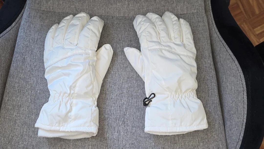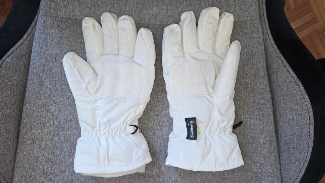White insulated ski gloves featuring 3M Thinsulate.
