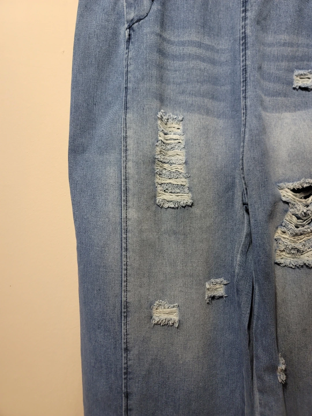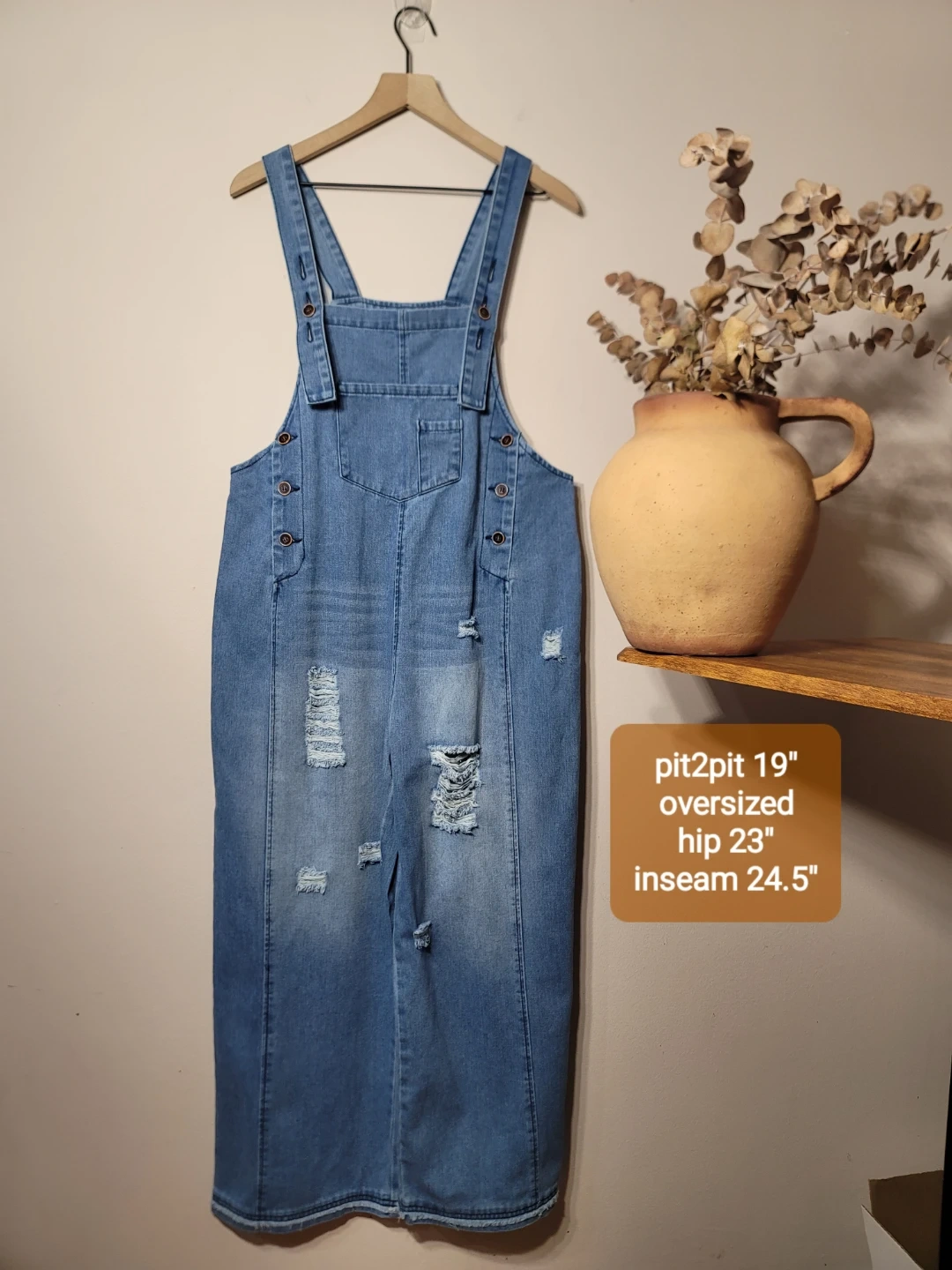 Level up your street style with these ultimate cool-girl denim overalls! Featuring a perfectly faded medium wash and heavy distressing for that lived-in, vintage feel, these are a total wardrobe staple for any season.