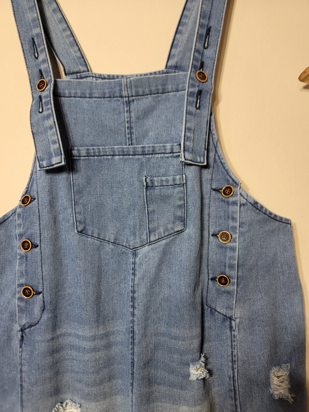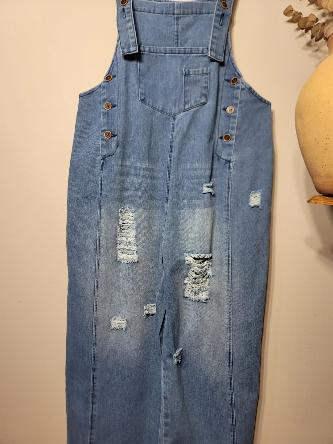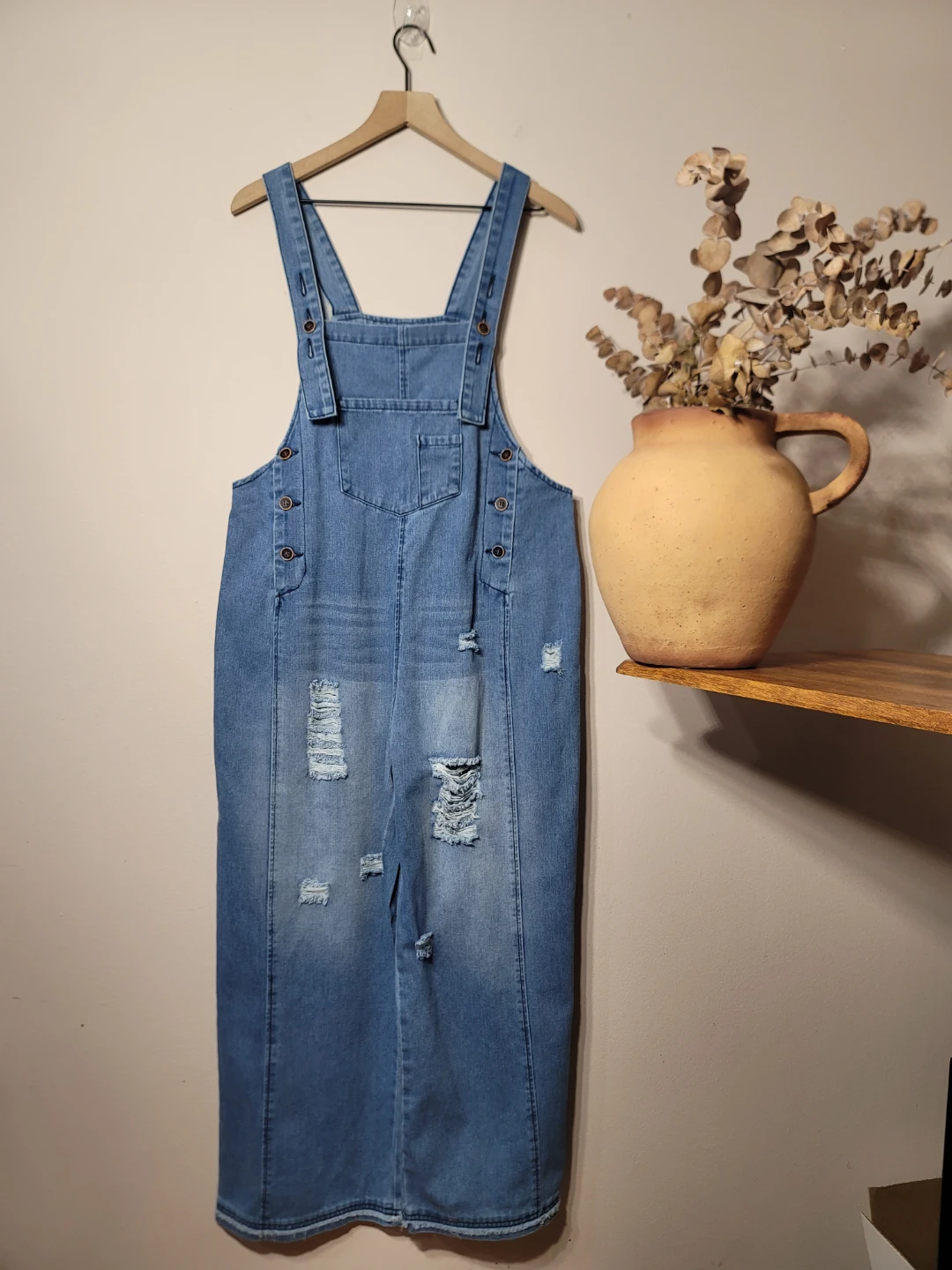 Level up your street style with these ultimate cool-girl denim overalls! Featuring a perfectly faded medium wash and heavy distressing for that lived-in, vintage feel, these are a total wardrobe staple for any season.