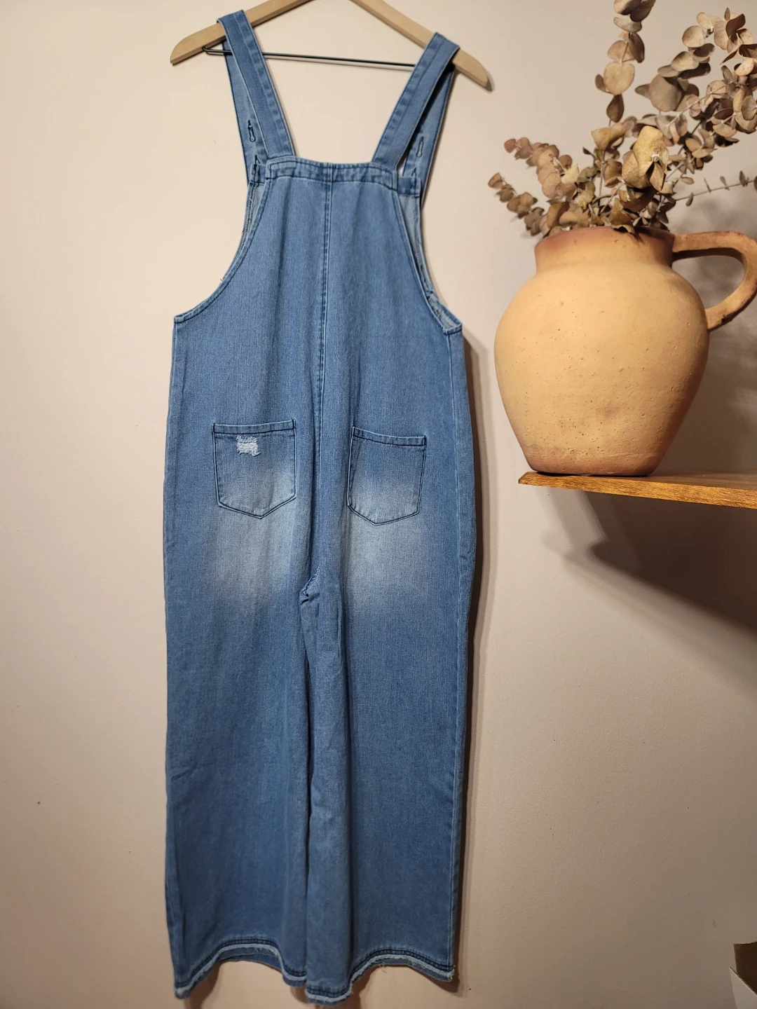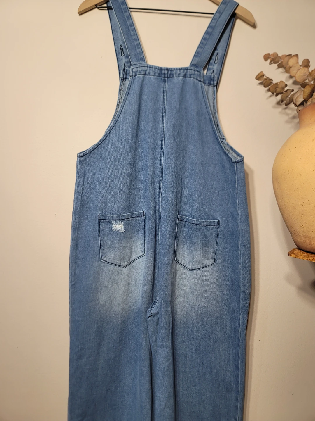 Distressed Wide-Leg Denim Overalls Baggy Sz M/L 90s Street