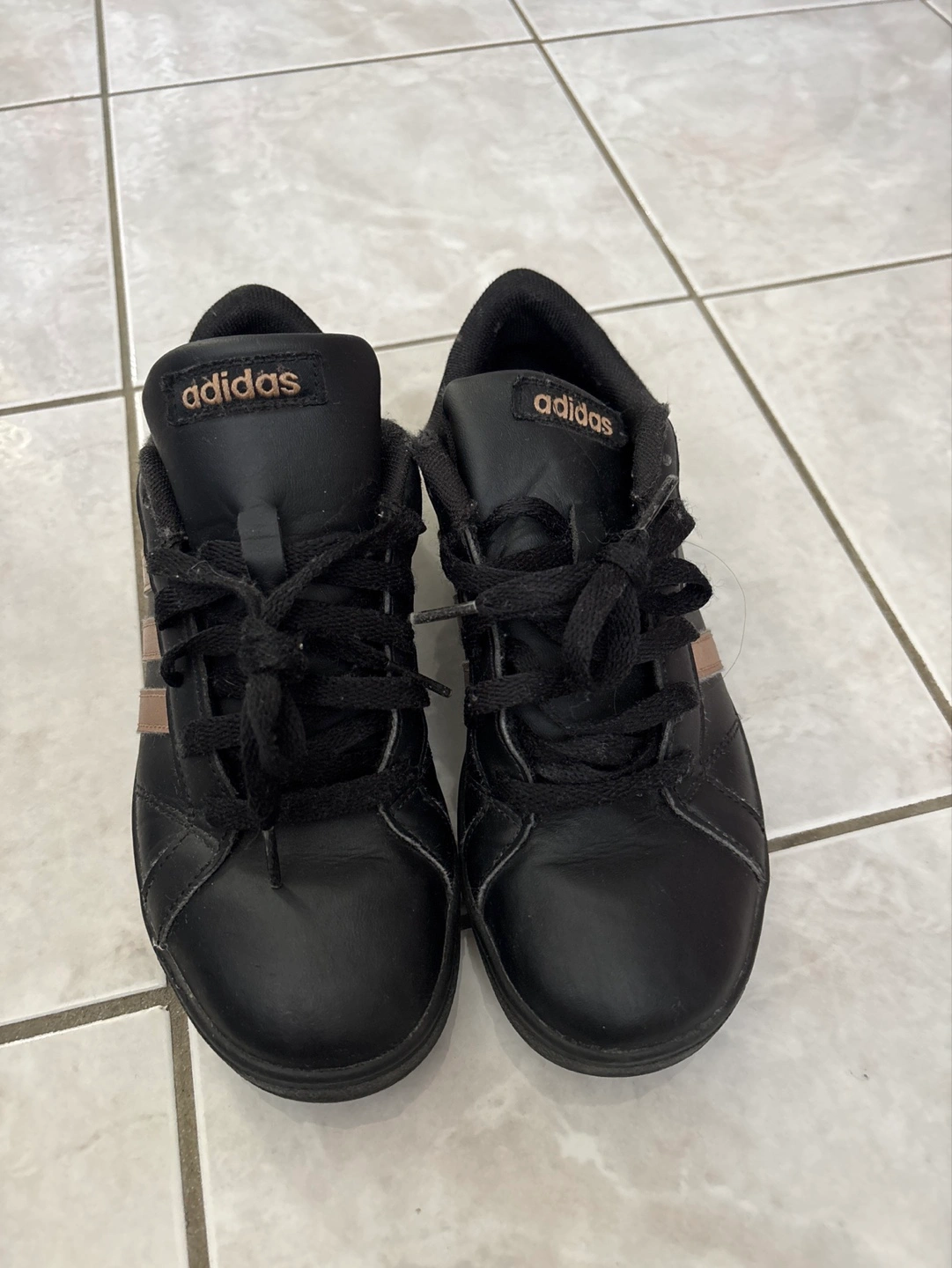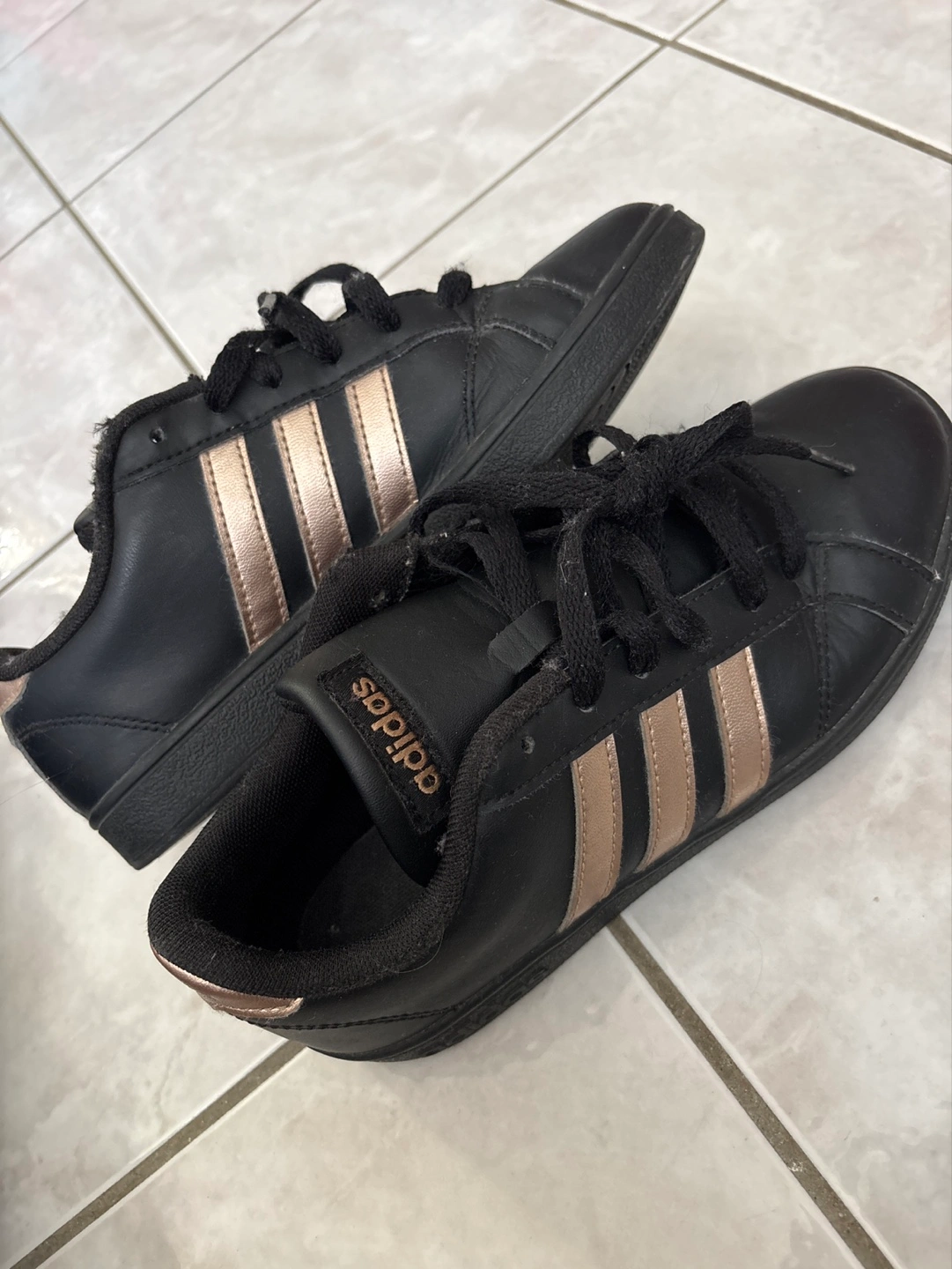 Buy & SellAdidas Girls' Black and Rose Gold Sneakers - Size 4Adidas Girls' Black and Rose Gold Sneakers - Size 4$20Pre-owned Adidas sneakers. Black leather with rose gold stripes. Size 4. Good condition. Minor wear.ConditionGoodWHERE TO MEETCheck LocationView MapSELLERKimRoding473 reviews1 chats·0 favorites·38 viewsSEND CHAT TO SELLERHi Kim! I’m interested in your listing.Hi Kim! I’m interested in your listing.Get the Karrot app to chatSign In to chat