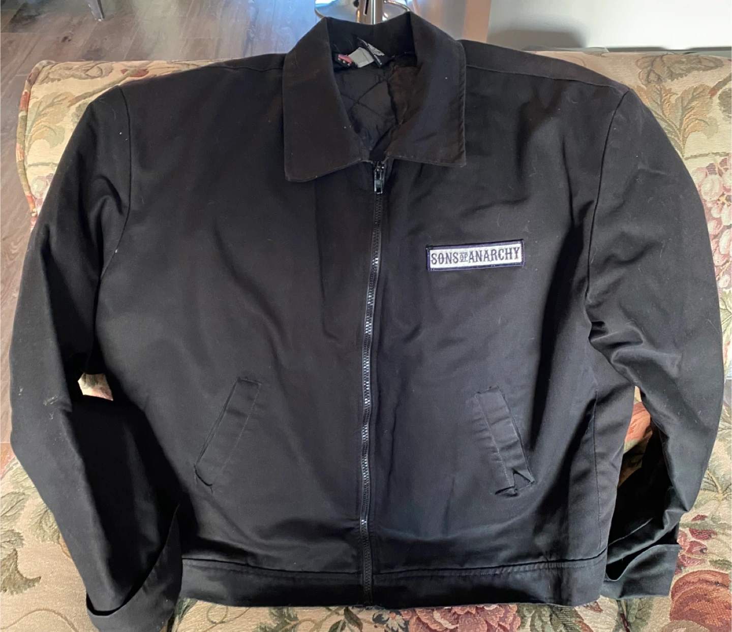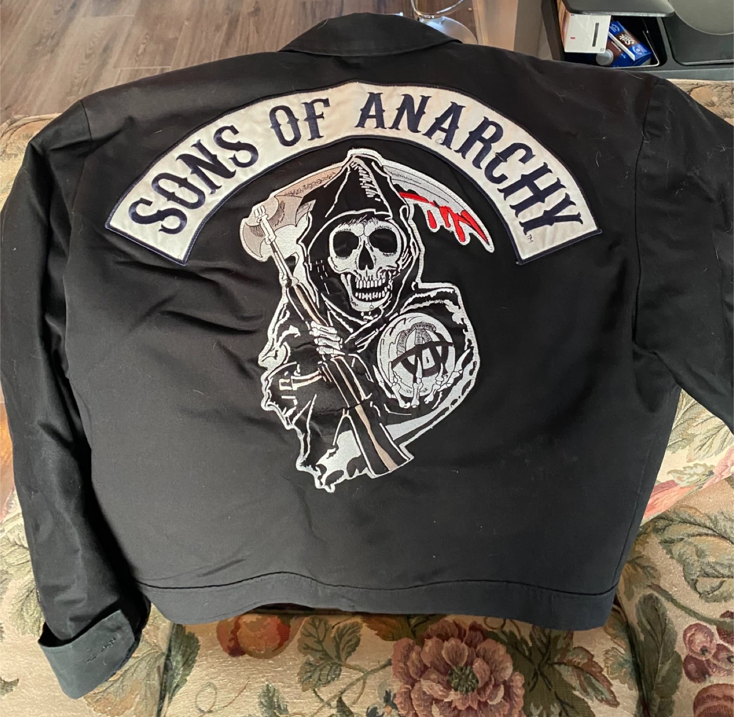 Buy & SellSons of Anarchy Black JacketSons of Anarchy Black Jacket$79Black jacket with the Sons of Anarchy logo patch on the front and large embroidered design on the back. It's a cool piece for any fan!BrandSons of AnarchyWHERE TO MEETLivingstonView MapSELLERverifiedJulieLivingston650 reviews0 chats·0 favorites·14 viewsSEND CHAT TO SELLERHi Julie! I’m interested in your listing.Hi Julie! I’m interested in your listing.Get the Karrot app to chatSign In to chat